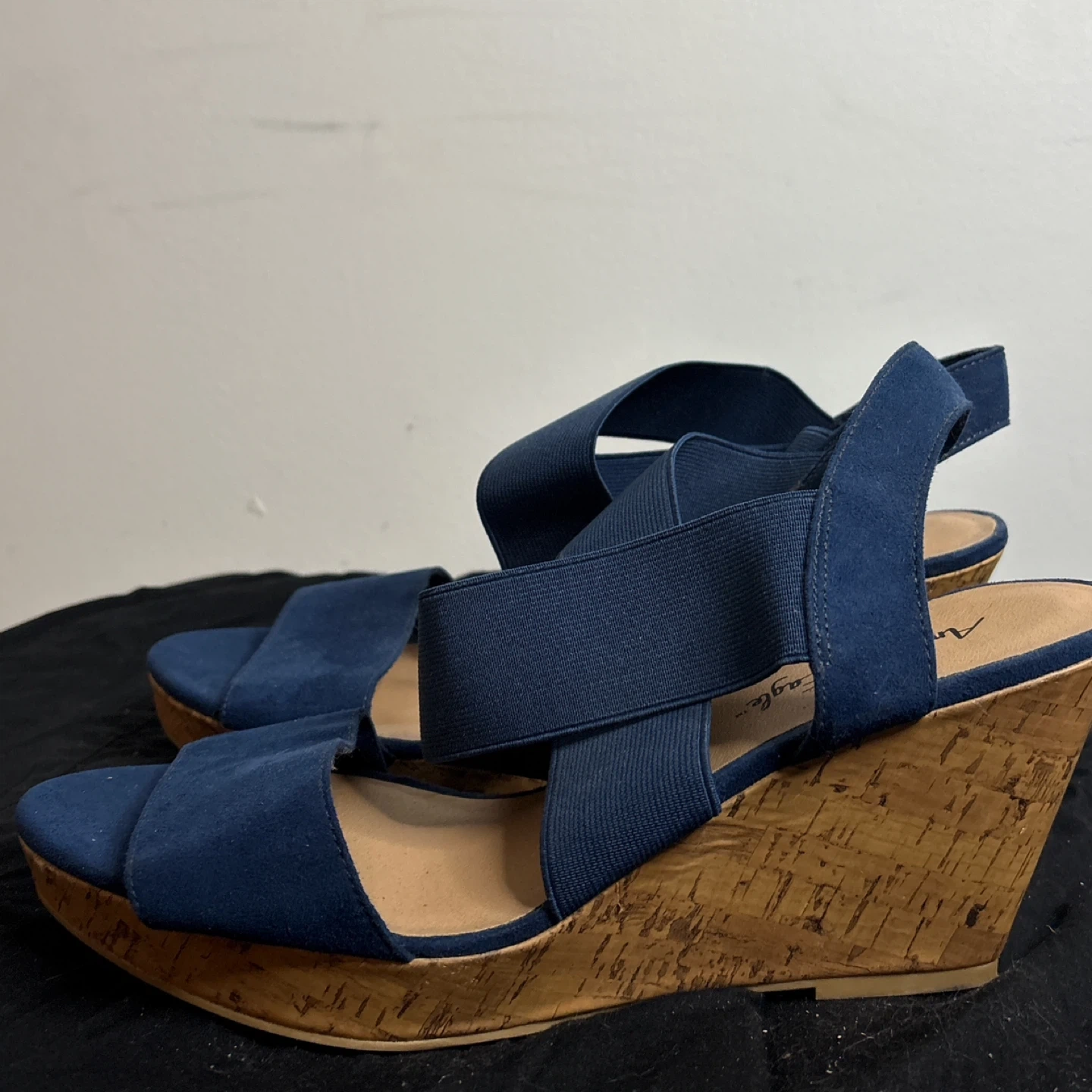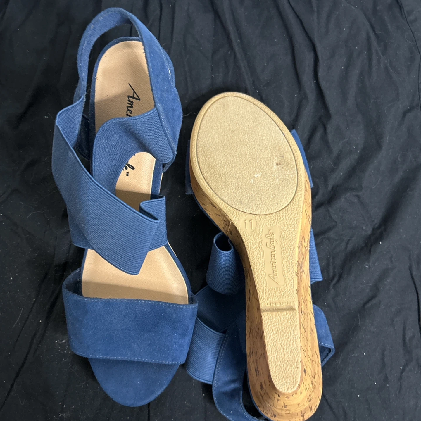 These American Eagle wedge sandals are a stylish addition to any wardrobe! They feature a comfortable elastic strap design and a cork wedge heel. The shoes are a size 11 and in good condition. Perfect for a casual day out or dressing up for an evening!
