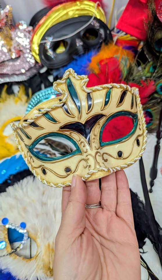 Gorgeous feather and sparkle masks, different materials and qualities, unique assortment.