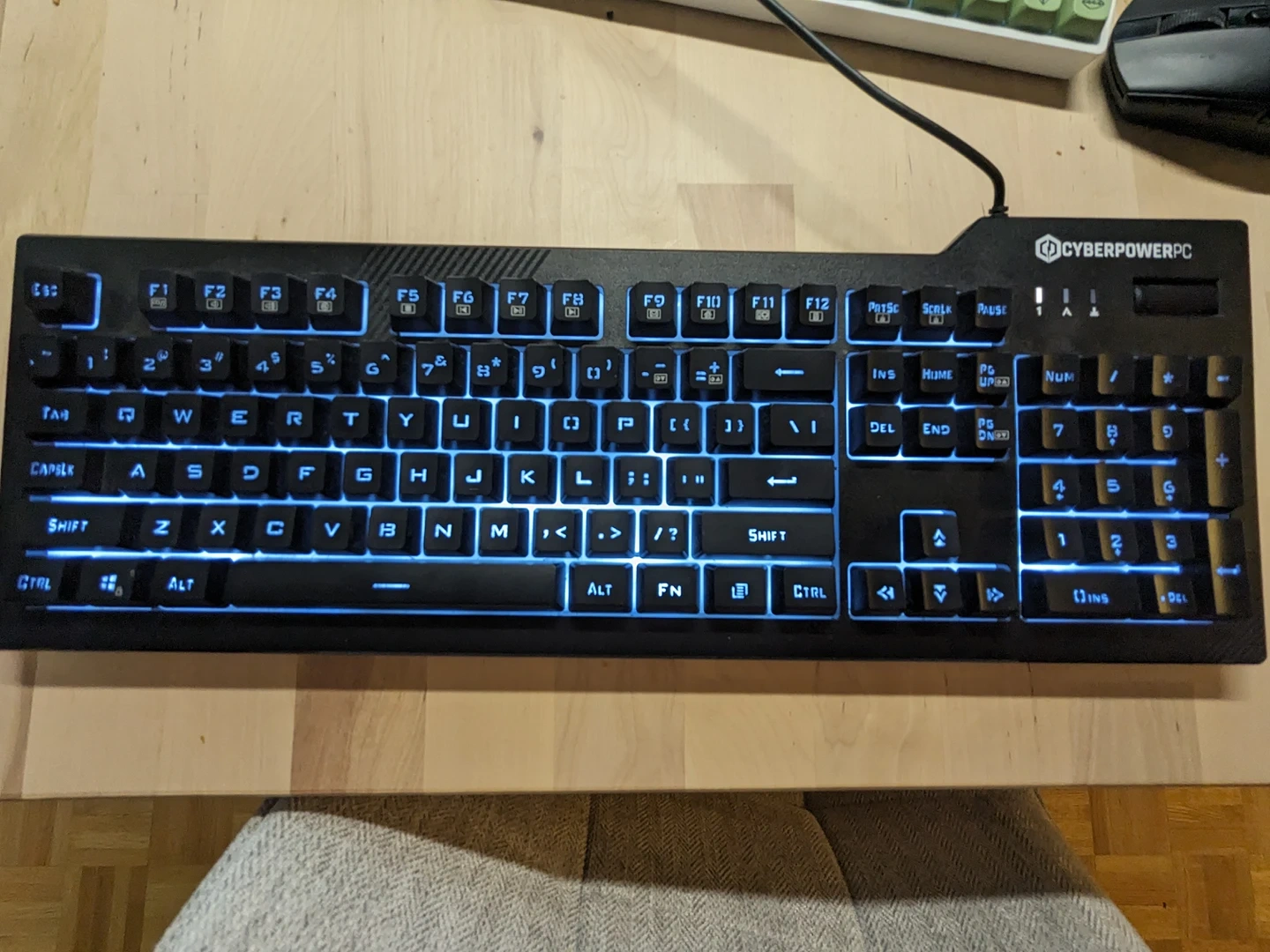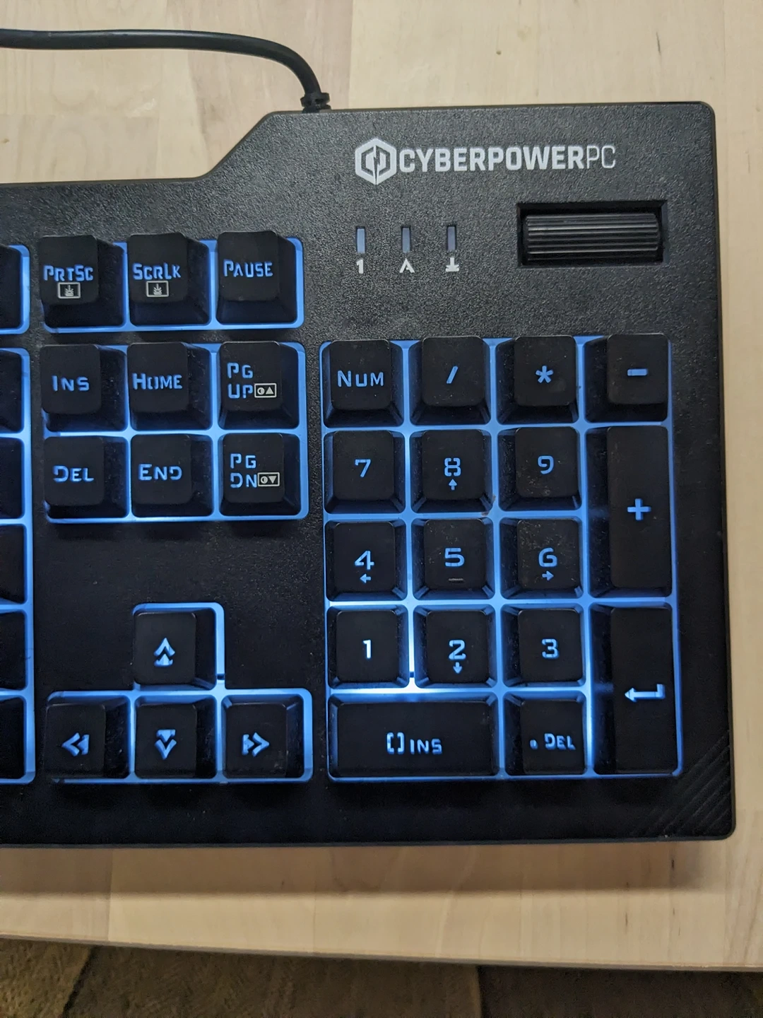 I got this for free when I bought my PC, it's a membrane keyboard with a numpad and volume wheel, but it's a bit too big for my desk so I bought a smaller one.