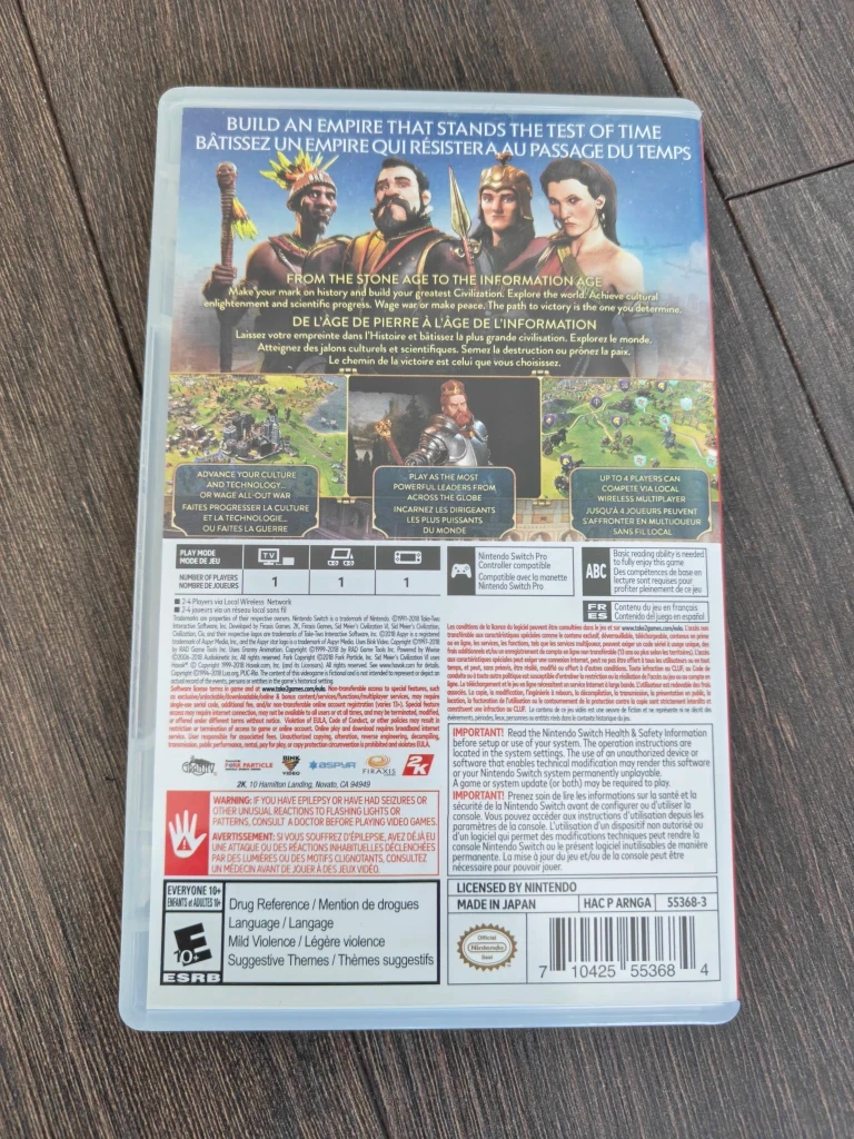 Selling Civilization VI for the Nintendo Switch, Nintendo Switch 2 ! It's a fun strategy game where you build an empire and advance through different ages. The game cartridge, manual, and case included.