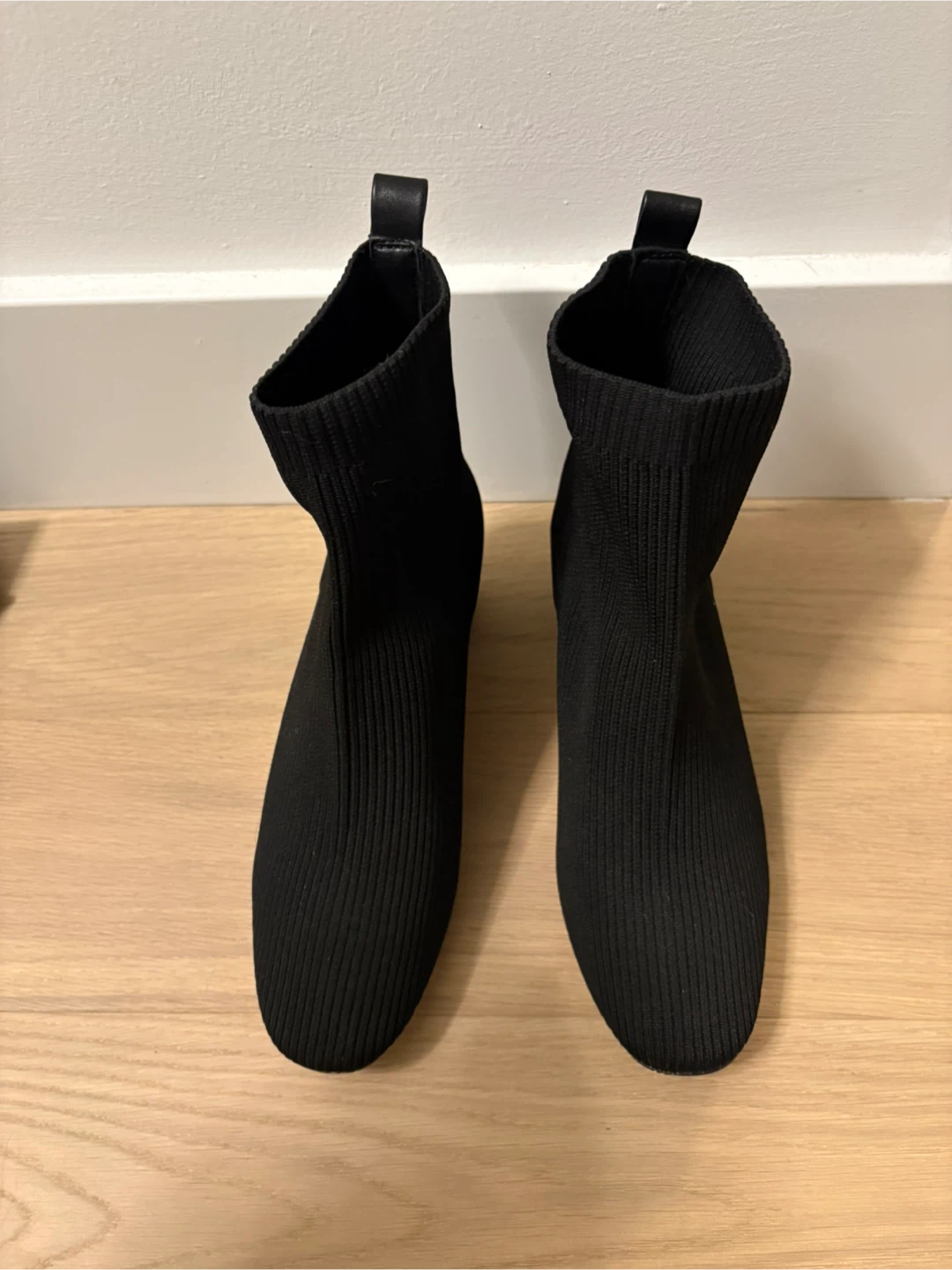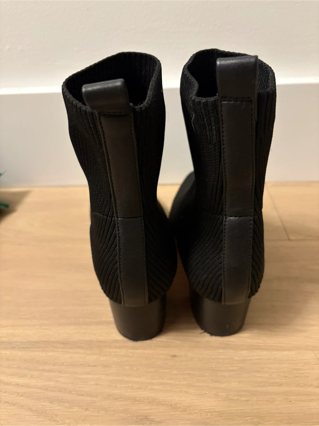 Black boots. Stretchy knit material and a short block heel. I’m great condition.