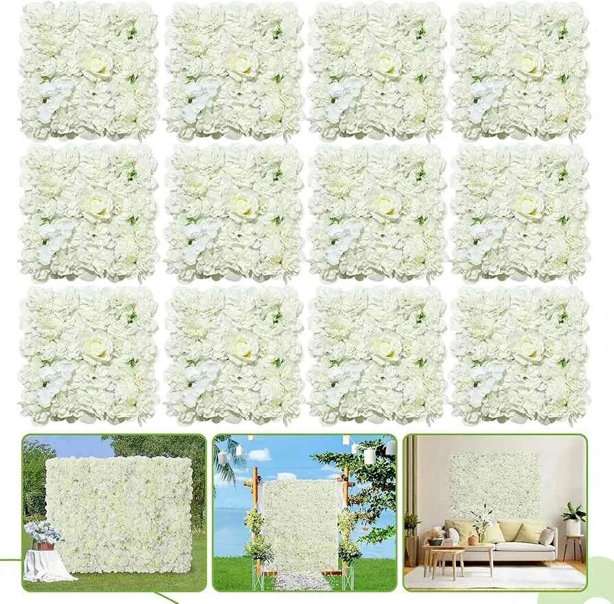 12Pcs White Flower Wall Backdrop Artificial Floral Panels