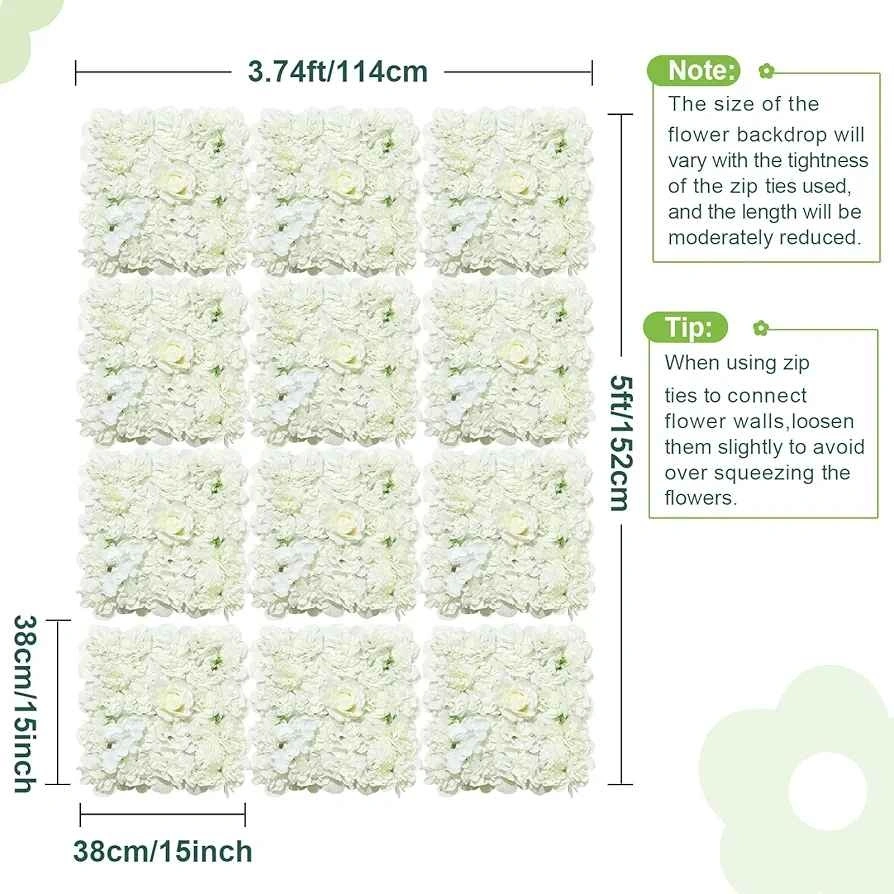 【Easy to Install】: Each back of the artificial flower wall background has a grid, and each flower wall mat comes with a zipper and wall hook. The panels can be connected by zippers for easy installation and use, and can also be hung on hooks or nails. Flower walls can provide various creativity, and you can use them to decorate what you want to your heart's content.