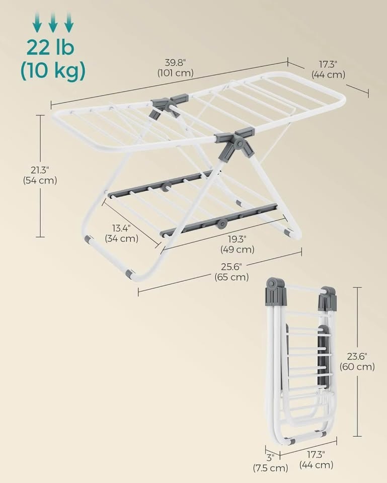SONGMICS Clothes Drying Rack, 17.3x39.8x19.7” – New