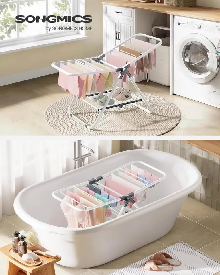 Keep your laundry organized and dry efficiently with this SONGMICS Clothes Drying Rack. Free-standing and easy to set up, perfect for indoor use. Brand new, still in its original box – never used. Durable and space-saving design.