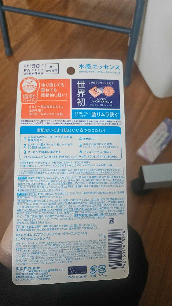 Keep your skin protected with Bioré UV Aqua Rich Watery Essence SPF50+ PA++++ sunscreen! This sunscreen has a light, watery texture that feels great on the skin. It's perfect for daily use and provides broad-spectrum protection against harmful UV rays