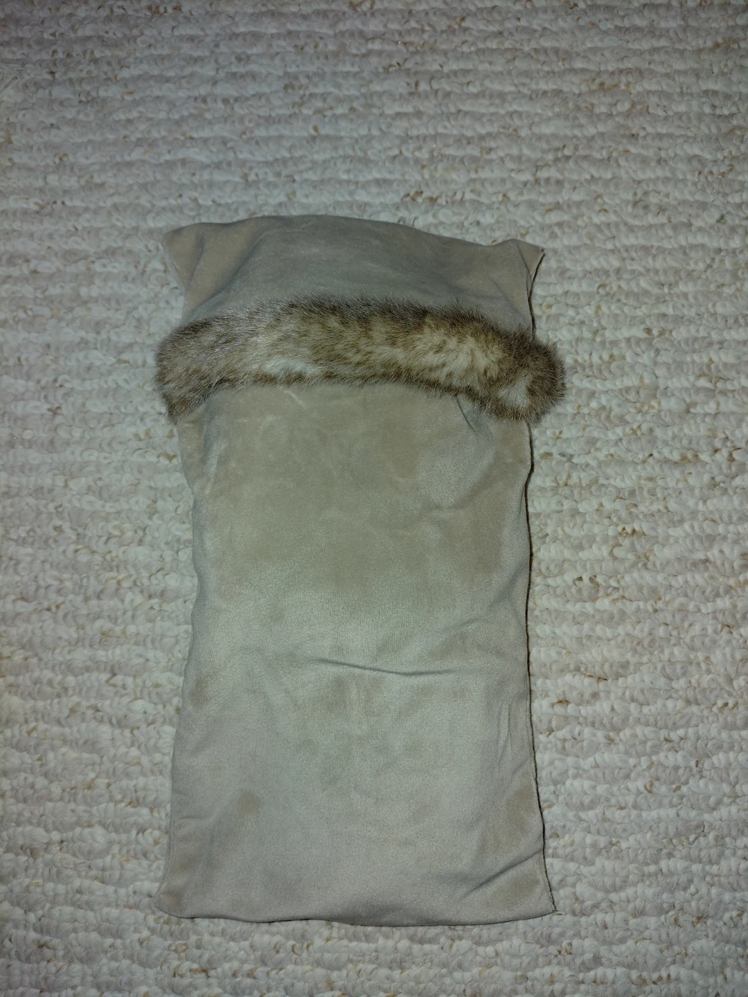 These Restoration Hardware comfy slippers feature a soft beige material and a stylish faux fur trim. They're perfect for keeping your feet warm and cozy around the house. The soles have a good grip, too! Brand new, never used. Comes with pouch.
