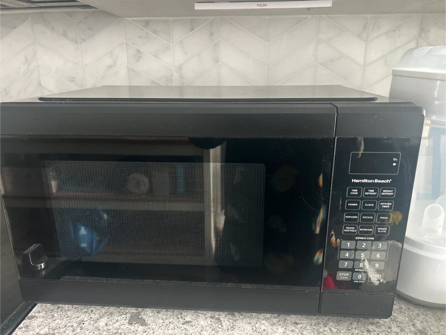 Selling a Hamilton Beach microwave in black. It's in excellent condition and ready for a new kitchen! It features various preset functions for common foods like popcorn, pizza, and potatoes. A great addition to any home! Only used for less than a year selling because I moved an my new place came with a microwave #cleanout