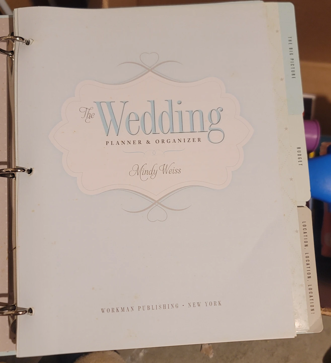 Giving away 'The Wedding Planner & Organizer' by Mindy Weiss! It's published by Workman Publishing in New York. It includes sections for 'The Big Picture,' 'Budget,' and 'Location, Location, Location!' And much more! This planner is perfect for keeping all your wedding plans organized in one place!