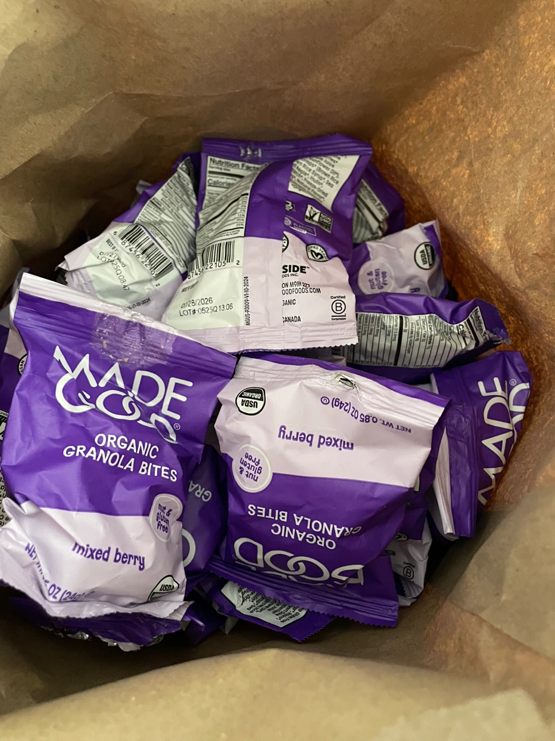Giving away a bag of MadeGood Organic Granola Bites in the mixed berry flavour. They're perfect for a quick snack on the go! The best before date is July 27, 2026