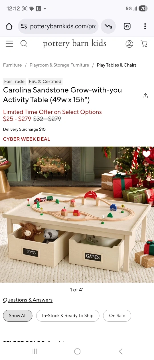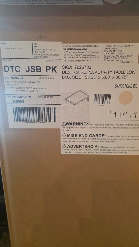 Selling a Pottery Barn Kids Carolina Sandstone Grow-with-you Activity Table! It's in great condition and ready for a new home. The table measures 49 inches wide and 15 inches high. The SKU is 7026783 and the MFG date is 2024 December.(STILL IN BOX)