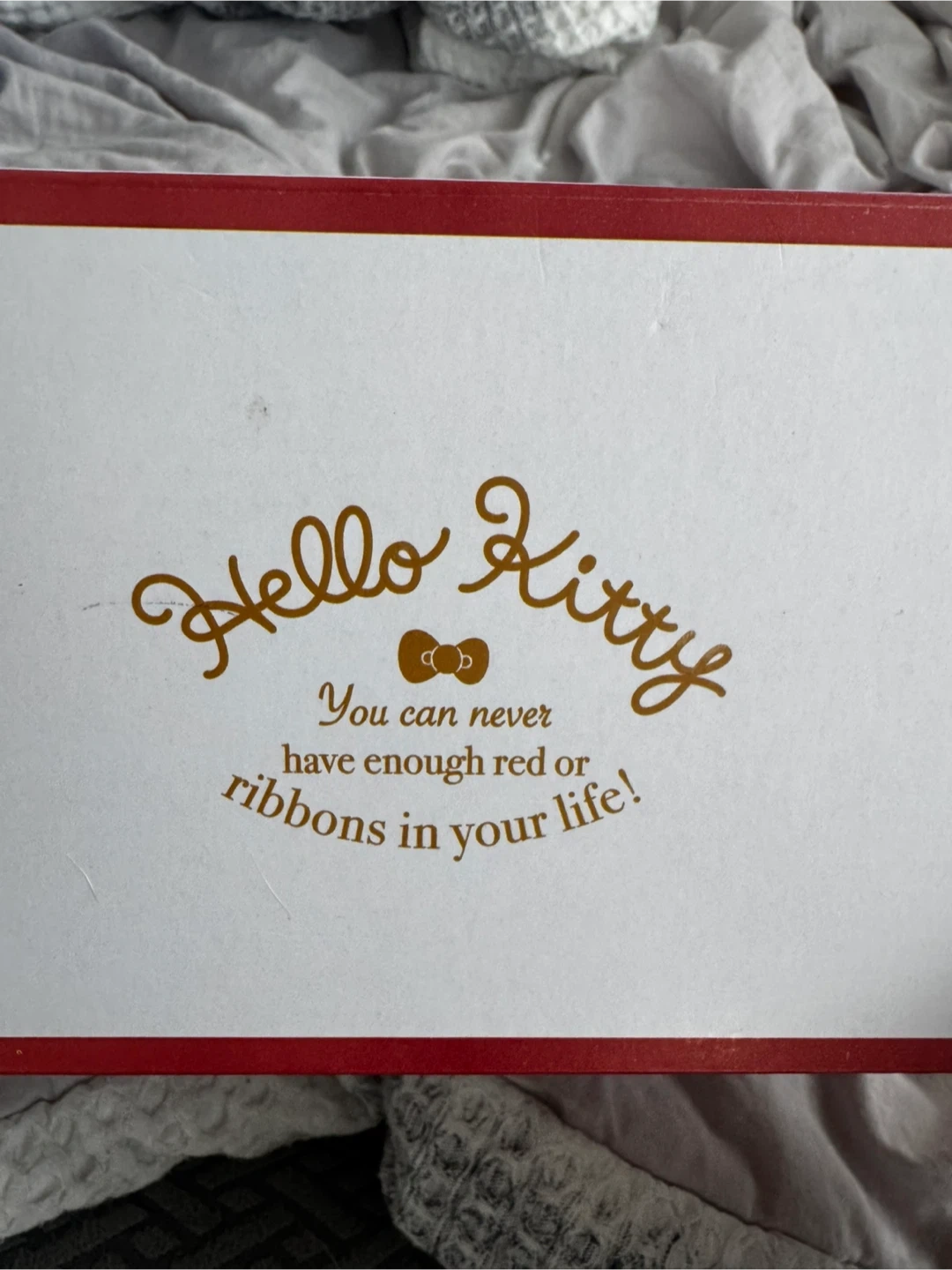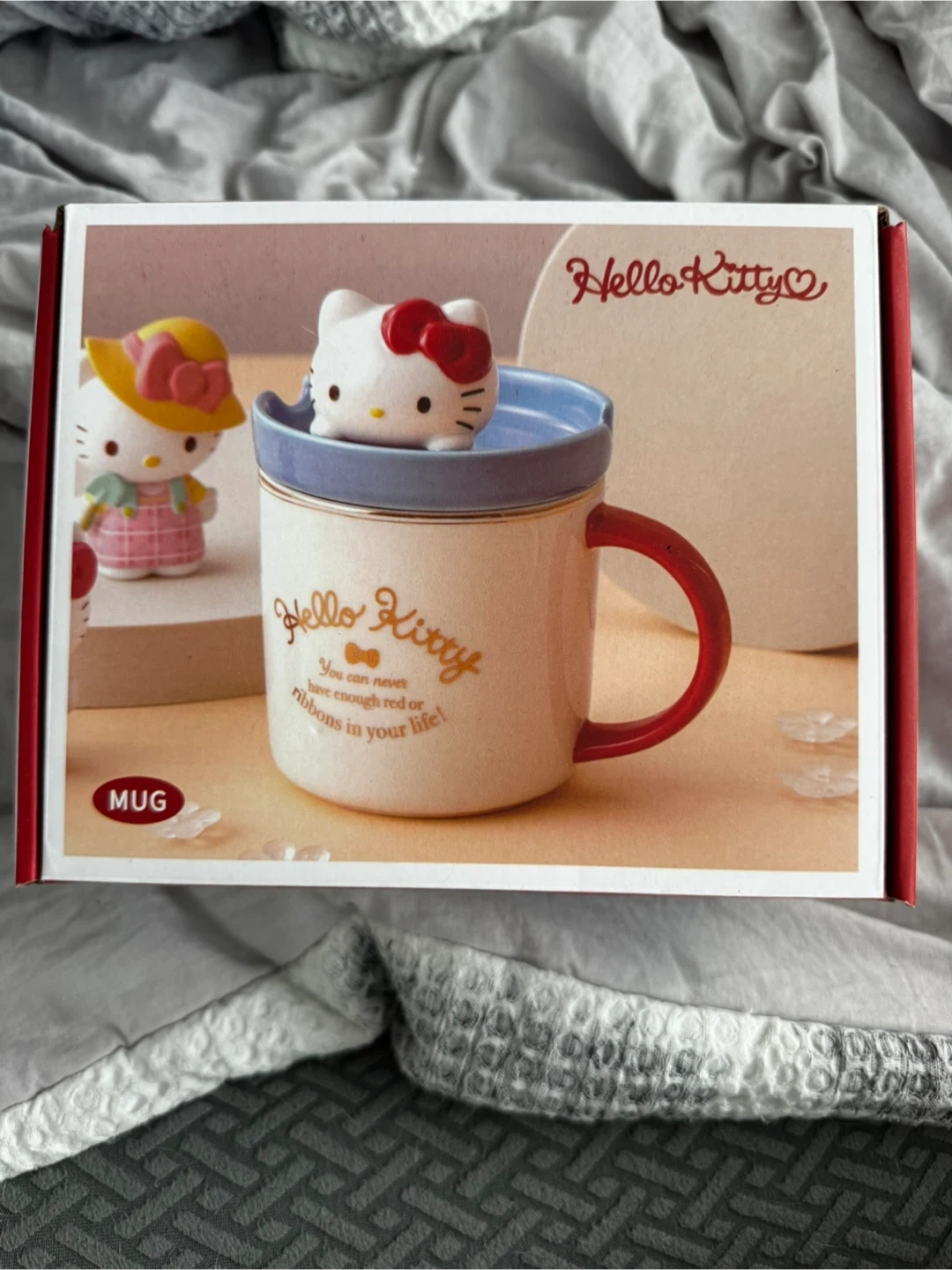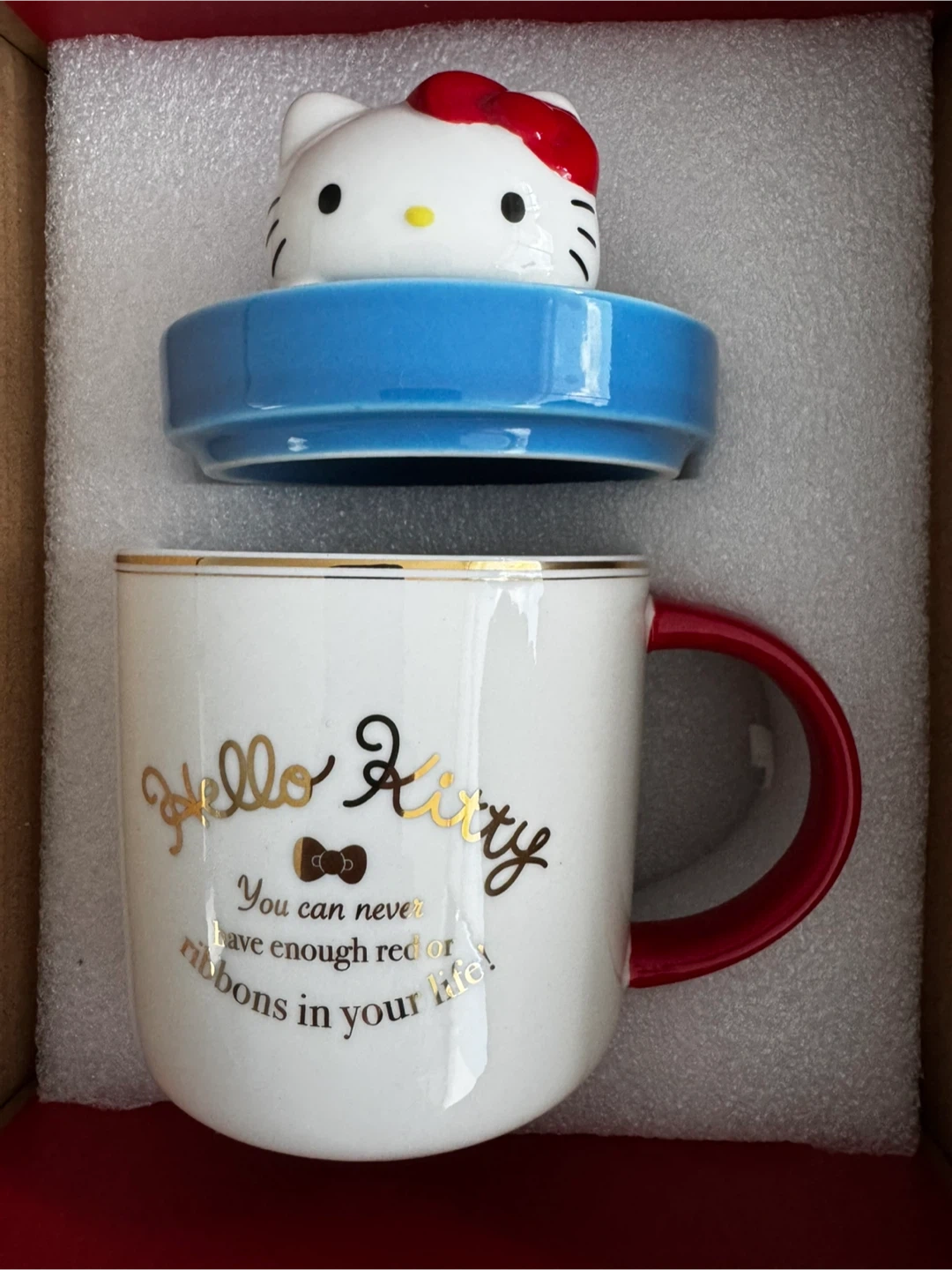 Selling a brand new Hello Kitty mug that comes with a lid! It's still in its original packaging. The mug features the classic Hello Kitty design with the quote: "You can never have enough red or ribbons in your life!" Authentic Sanrio merch. Retails for $39.99.