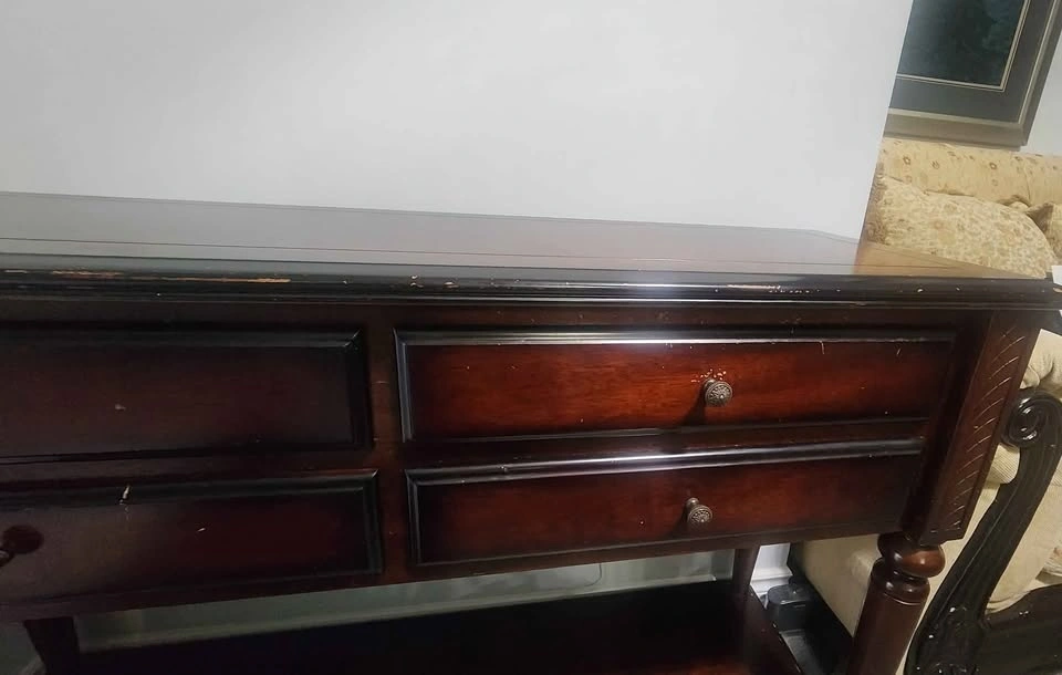 Selling console table with 4 drawers from Bombay Company - As Is. As shown on the pictures, table has some scuffs and marks. Dimensions: L 47" W 16" H 32" Cash and pick up only.
