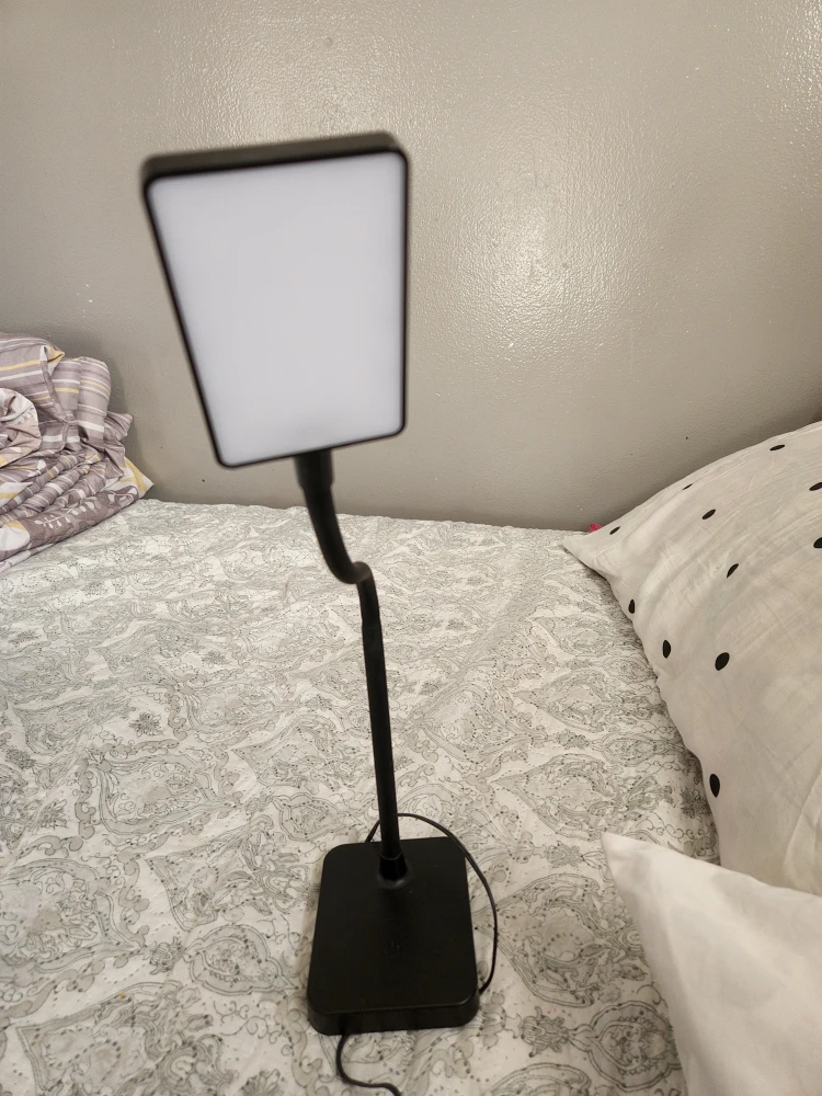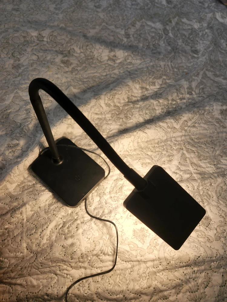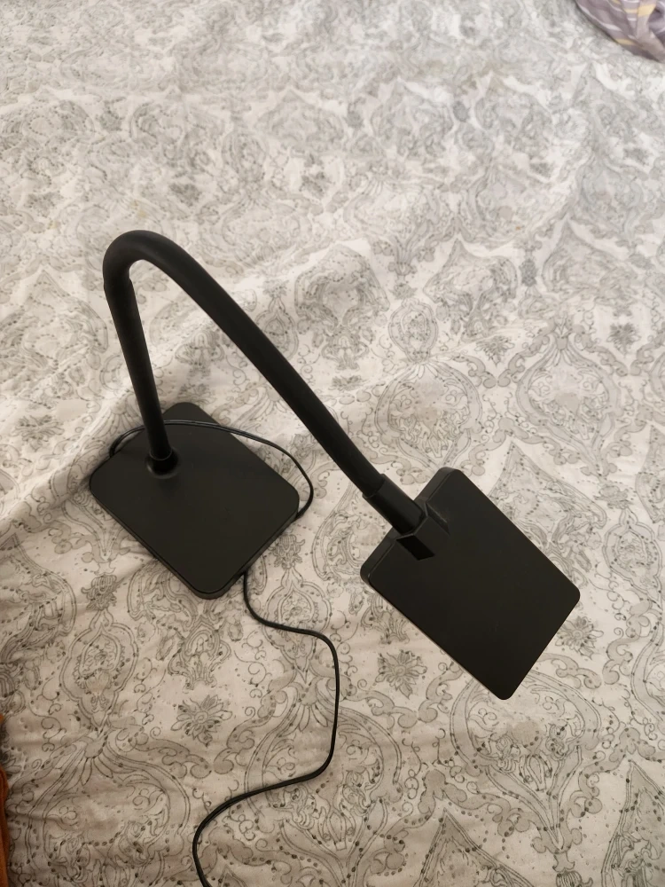 Selling a black LED desk lamp. It has a flexible gooseneck design, so you can adjust the light to the perfect angle. It's in great condition and perfect for a desk or bedside table