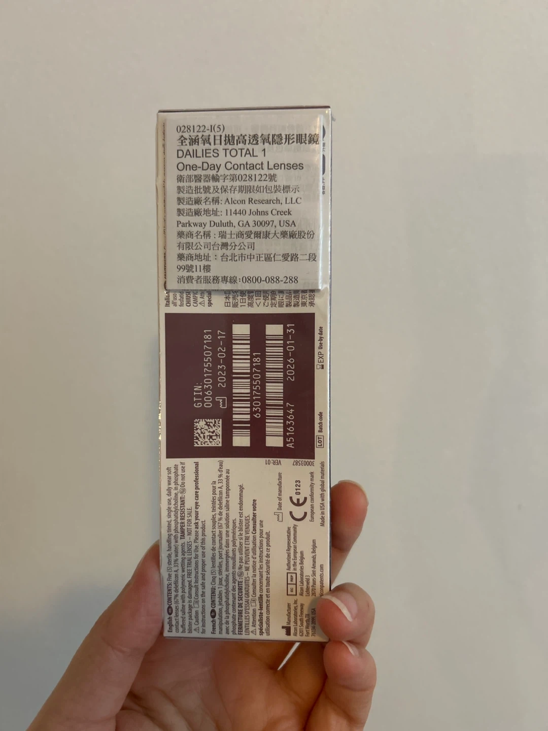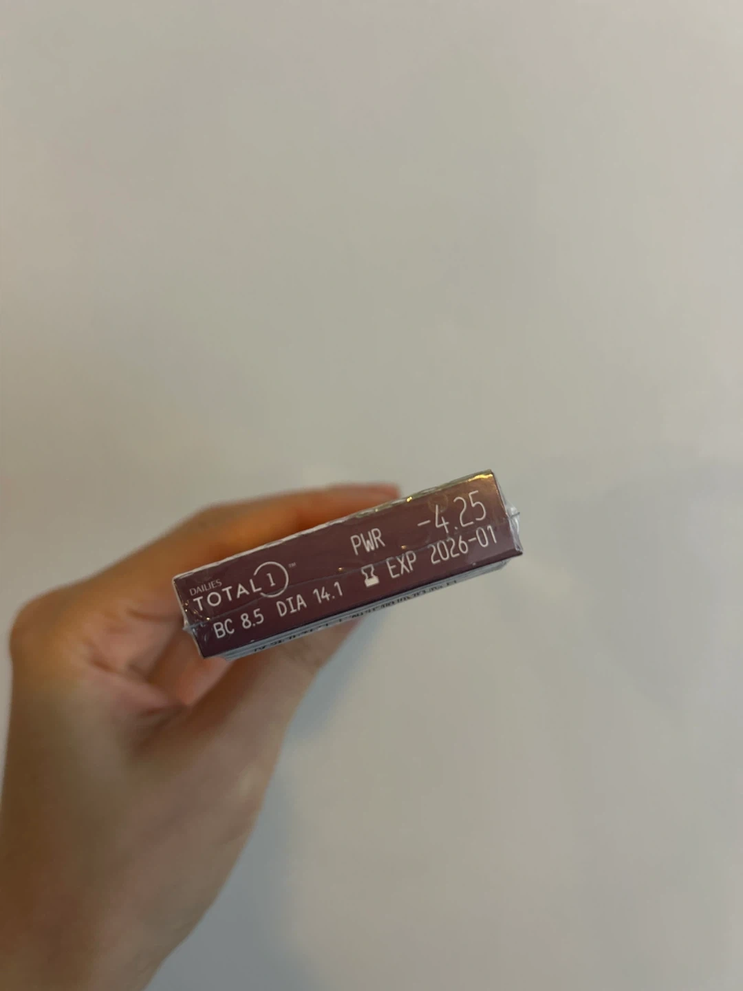 Selling a box of Alcon Dailies Total 1 daily contact lenses. They are -4.25 power, BC 8.5, and DIA 14.1. The expiration date is 2026 January 31. Feel free to message me with any questions!