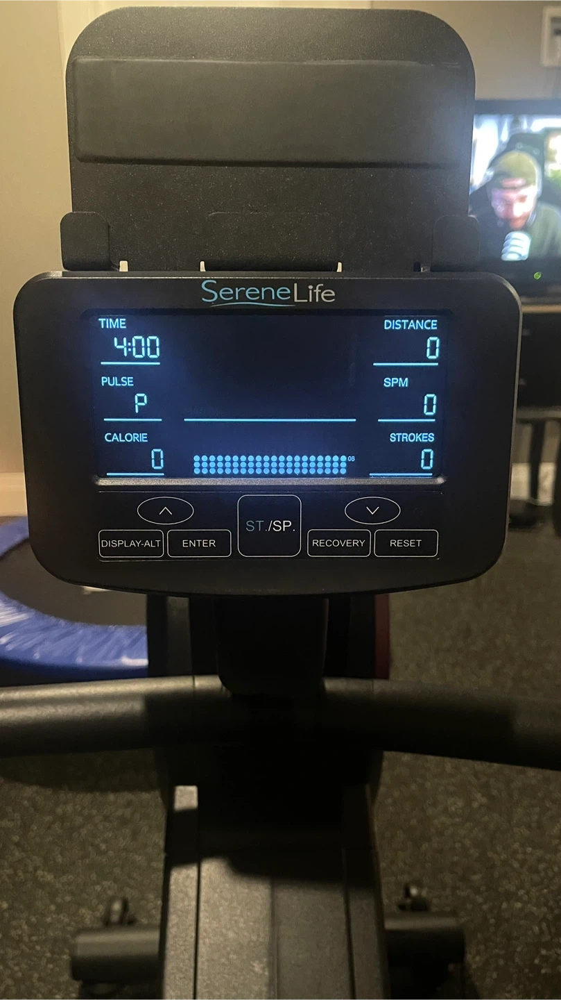 Selling a SereneLife rowing machine. It's in great condition like new and ready for a new workout space! The display shows time, pulse, calorie count, distance, and strokes. Perfect for getting your cardio in at home!
