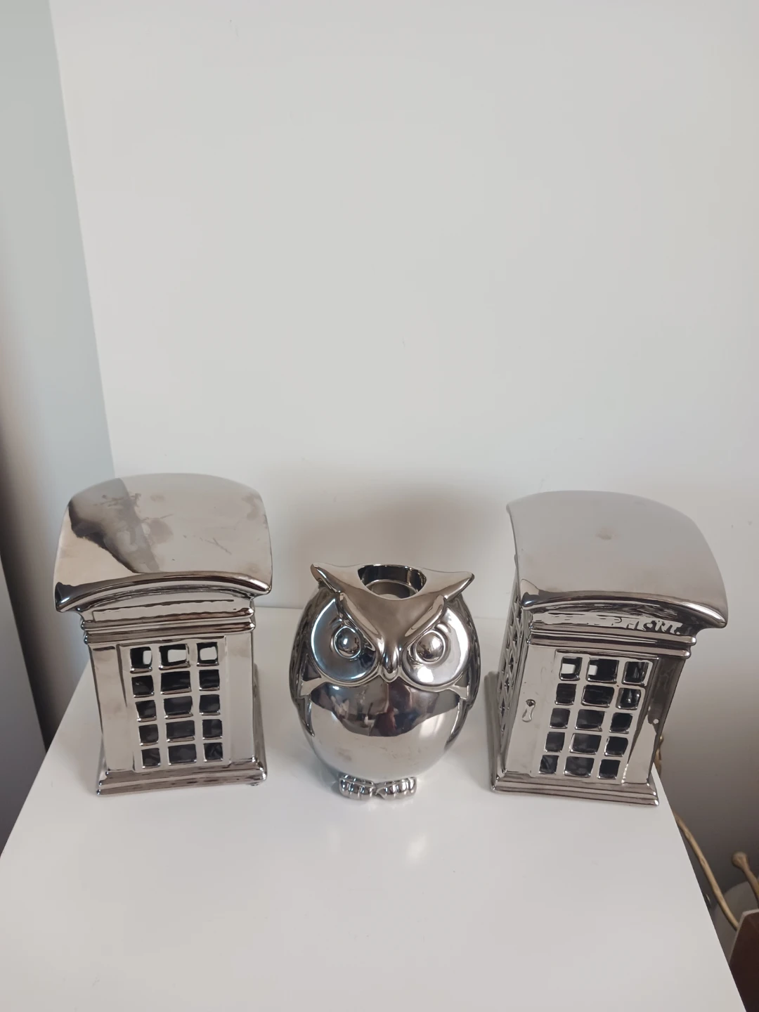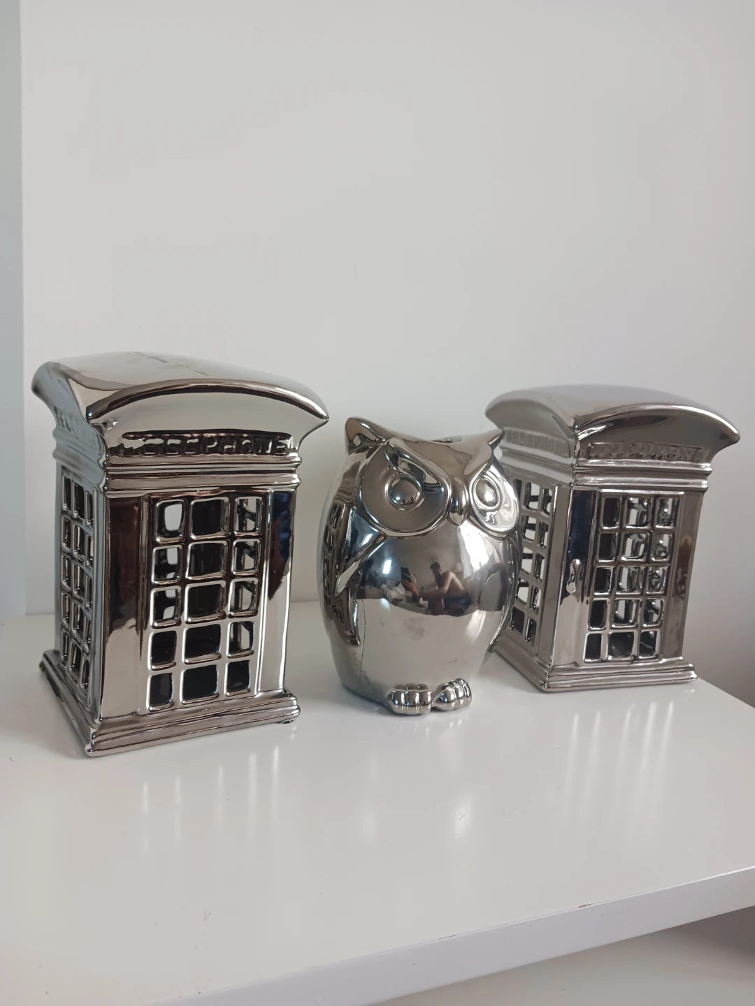 Modern Chrome Silver Owl and London Phone Booths