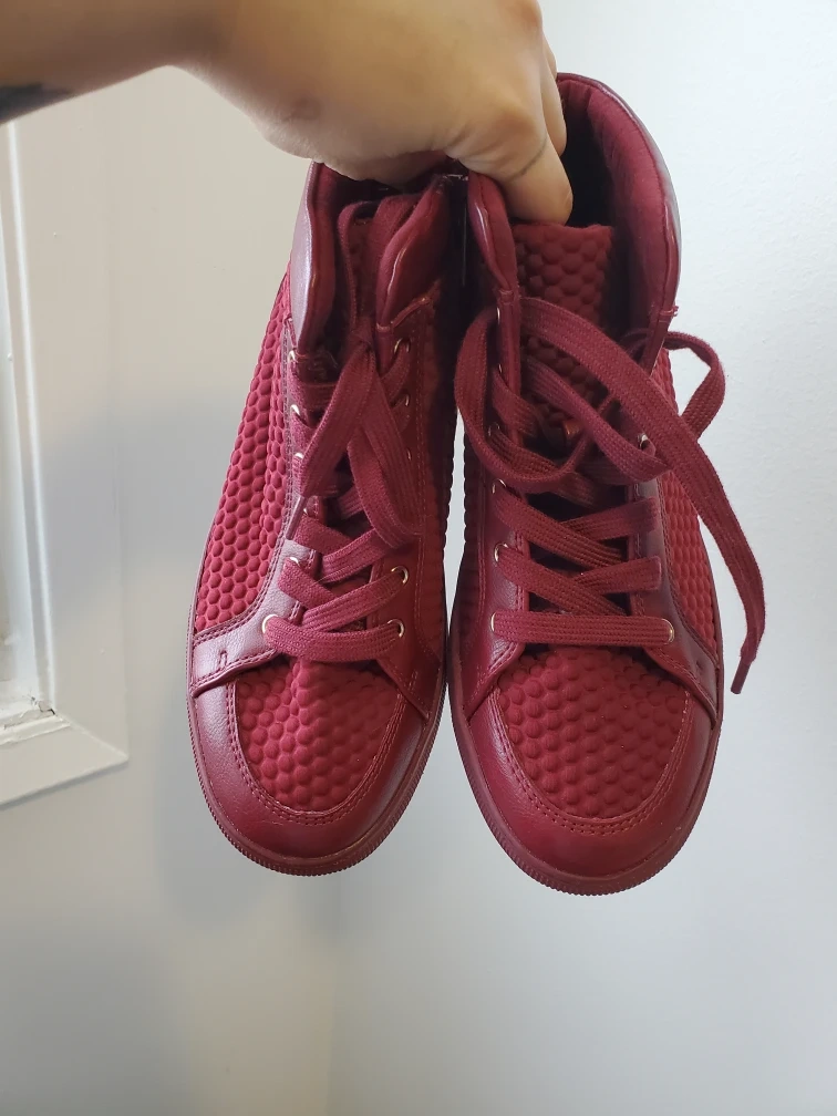 Selling a pair of Aldo high-top sneakers in a lovely red colour! They're in great shape and are a women's size 6.5. Perfect for adding a pop of colour to your outfit!