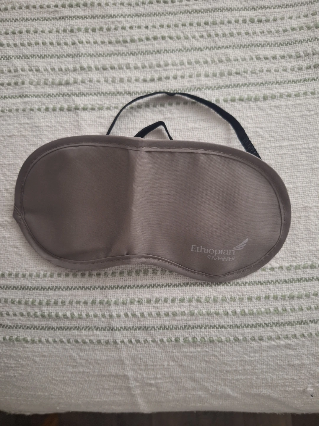 sleep mask from Ethiopian Airlines! It's a nice grey colour and in great condition. Perfect for travel or just getting a good night's sleep