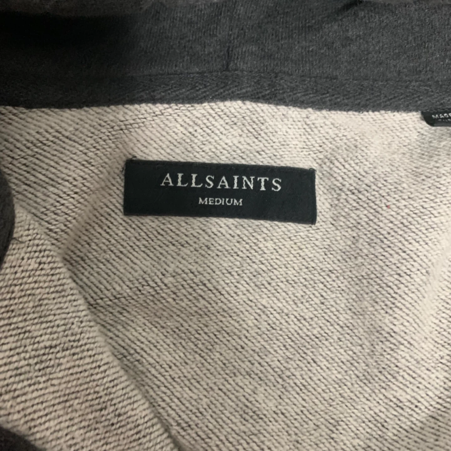 Selling a gently used AllSaints zip-up hoodie in a nice grey colour. It's a size medium and in great condition. Perfect for layering or wearing on its own!
