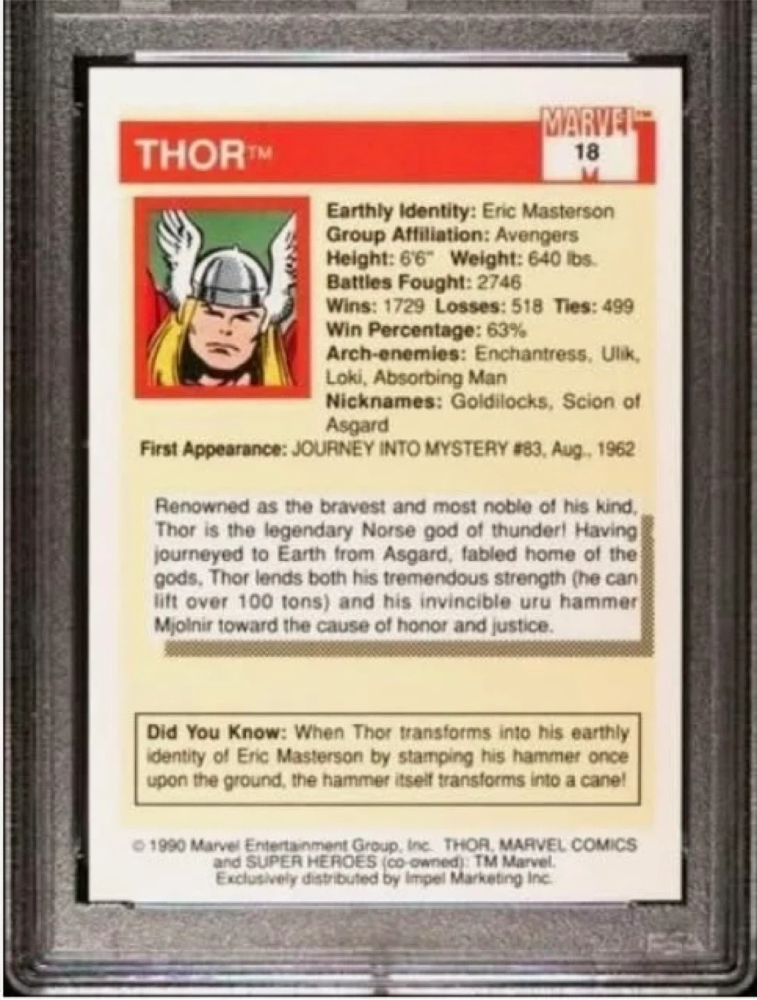 Thor Marvel Super Heroes Trading Card