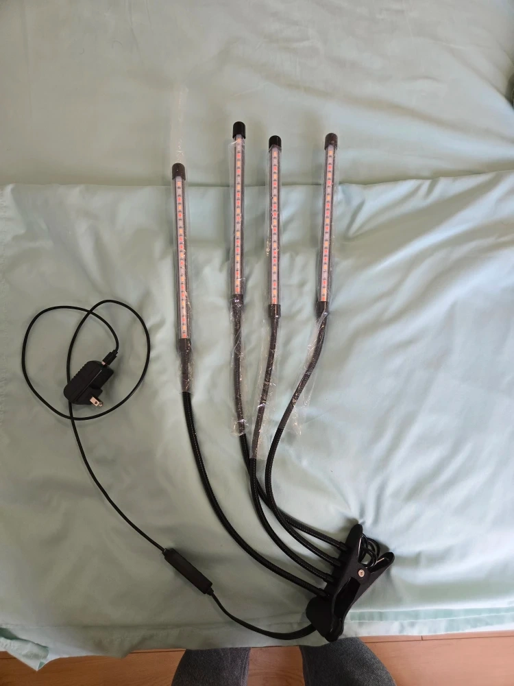 Selling a four-headed LED grow light with a clamp. Great for starting seedlings or keeping your houseplants happy during the winter months. It also includes a power adapter.