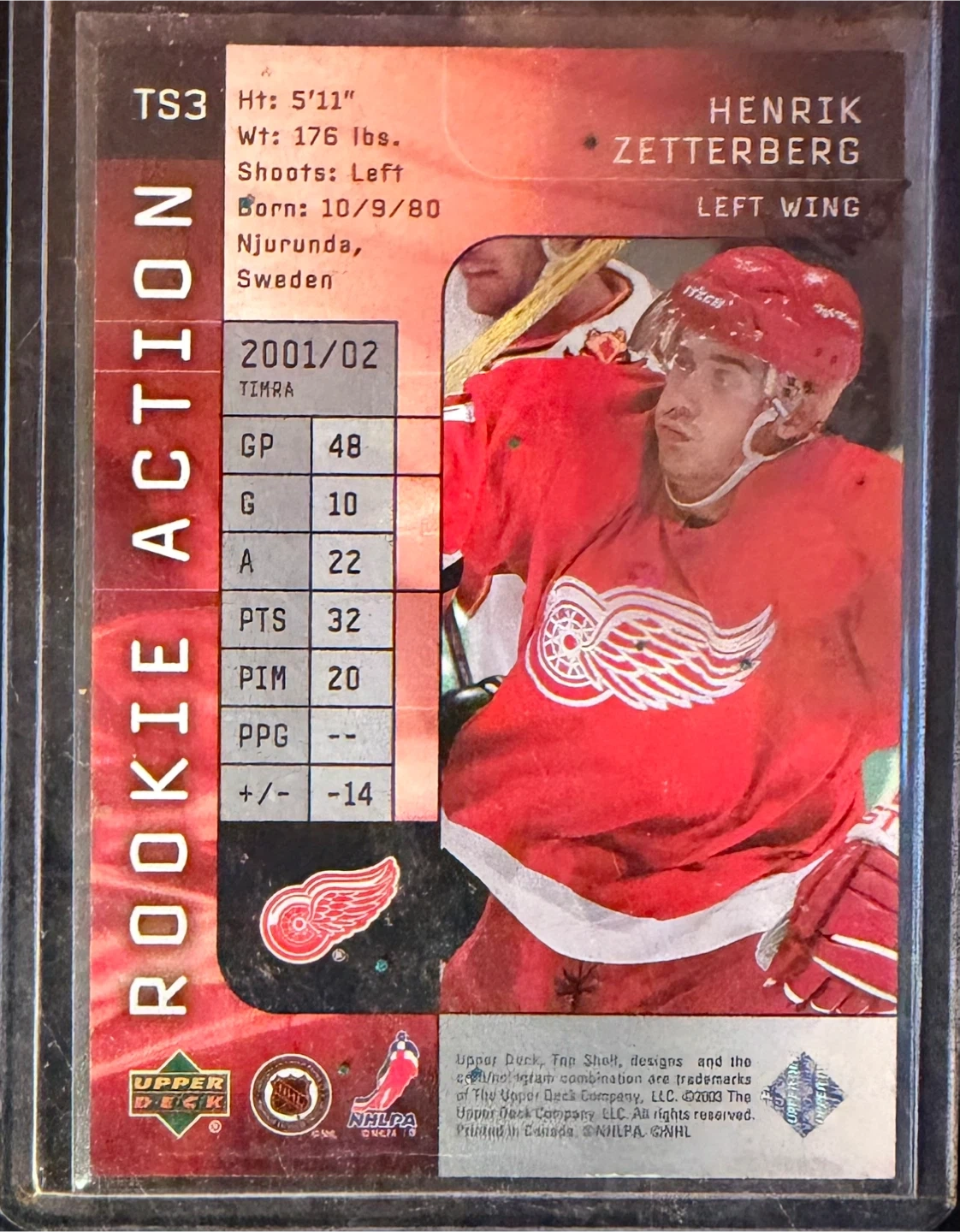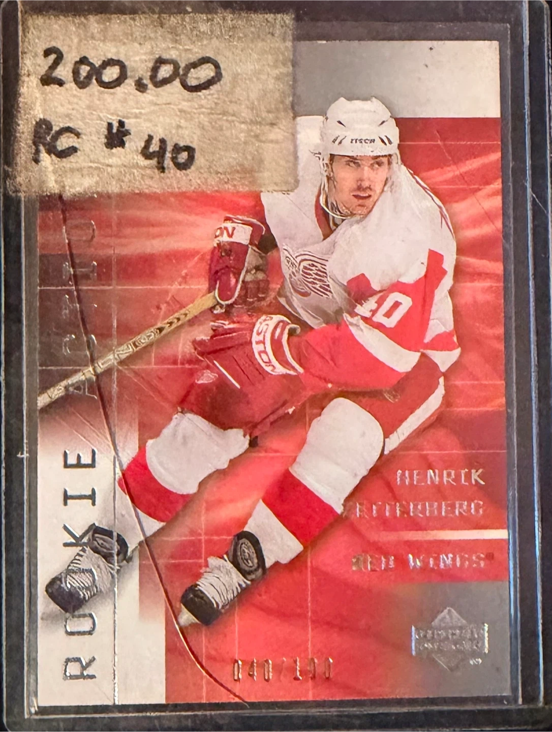 Selling a Henrik Zetterberg rookie card. It's from the 2001/02 season with Timra. The card features Zetterberg in his Red Wings uniform. Great for any hockey card collector!