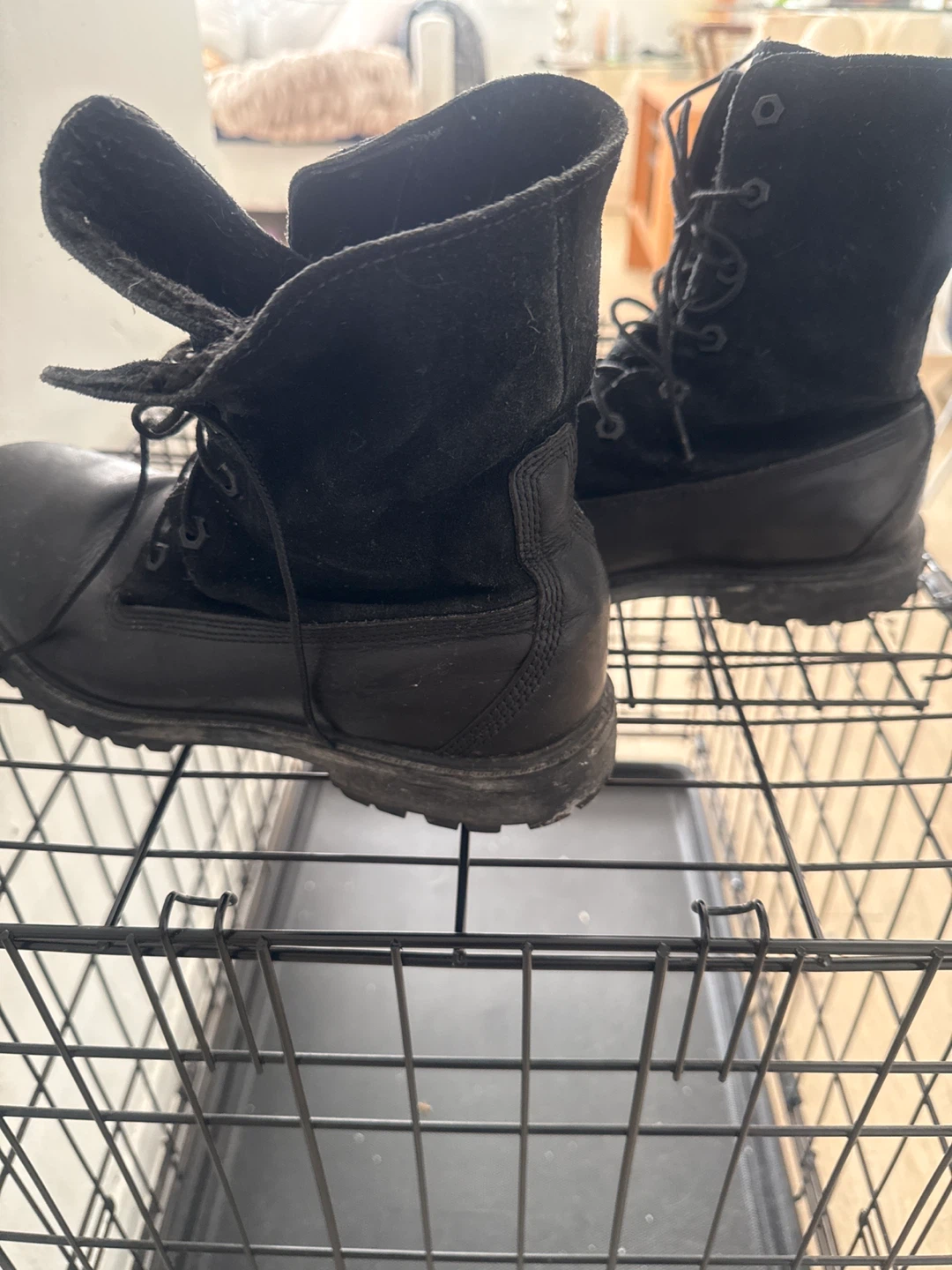 Selling a pair of Timberland boots in black leather. They show some signs of wear but are still in good condition for everyday use. Please see the photos for details!
