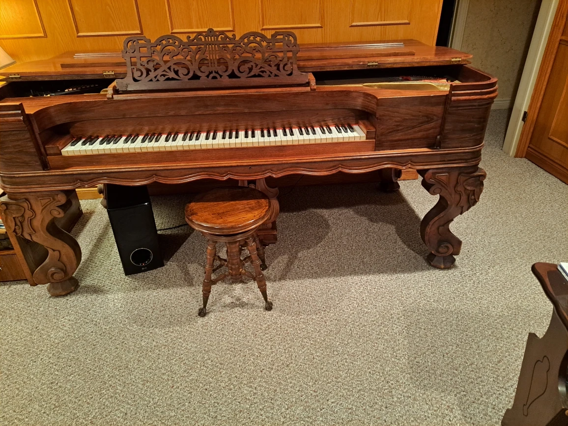 Selling a beautiful Newcombe Square Grand Style 5 Toronto piano. Approximstely 140 years . Dimensions 80" x 40" x 37". It features intricate newly refinished woodwork and comes with a matching stool .