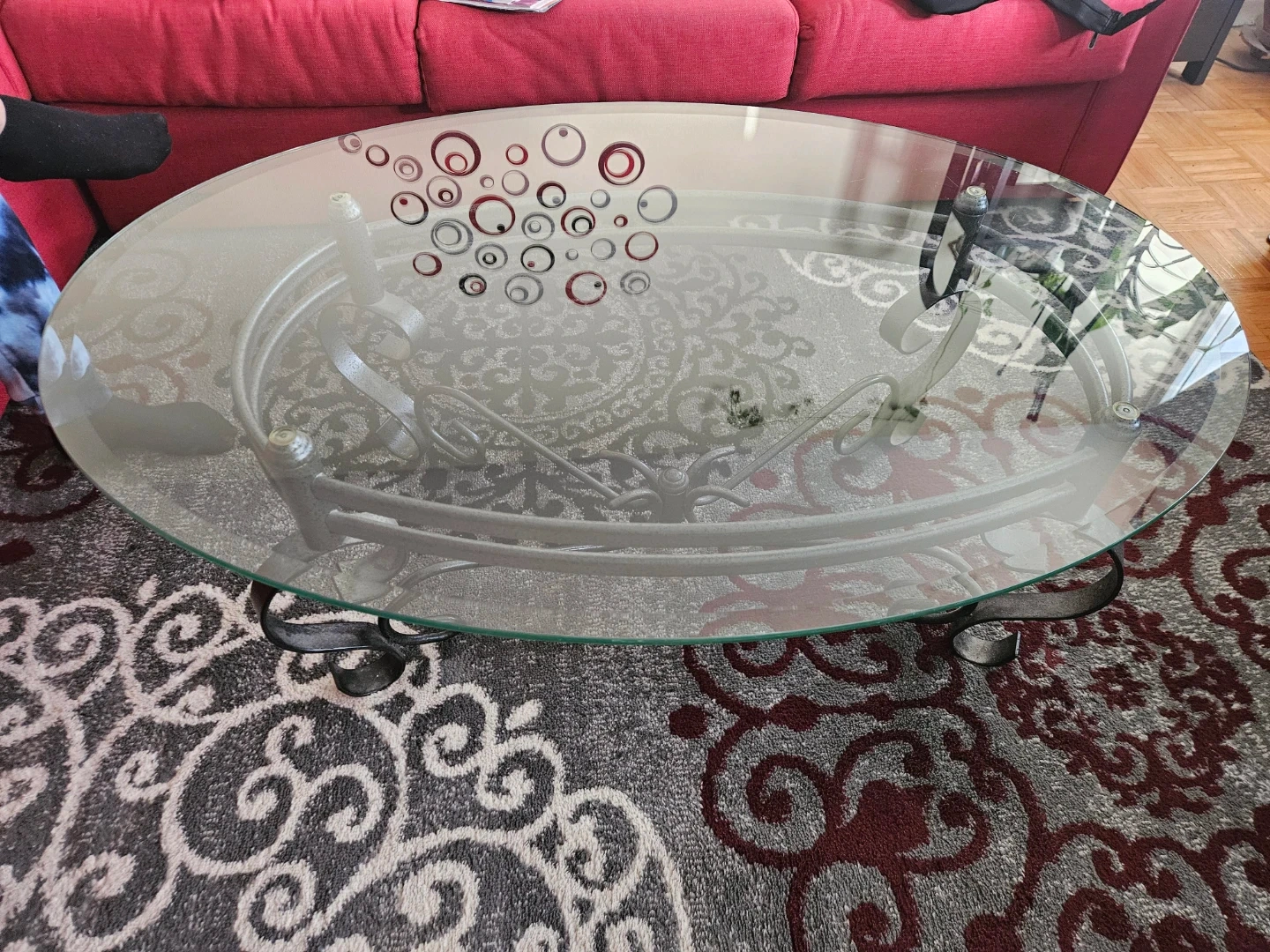 Selling a glass top coffee table with a metal frame. It's in great condition, no damage and would look great in any living room or rec room.
