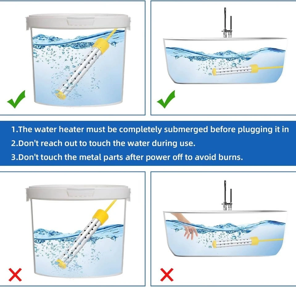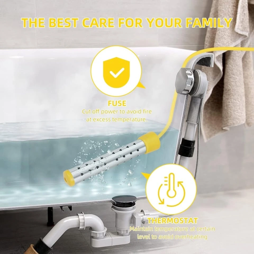 1500W Immersion Water Heater with Digital LCD Thermometer & Stainless Steel Guard - Fast Heating for Bathtub, Travel Camping Mini Pool, Bucket | Safe & Portable Heat 5 Gallons of Water (Yellow)