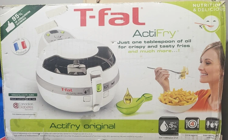 Selling a T-fal ActiFry Original. It uses just one tablespoon of oil for crispy and tasty fries, and much more! It has a 2.2 lb capacity and is great for cooking with less fat. The box is included