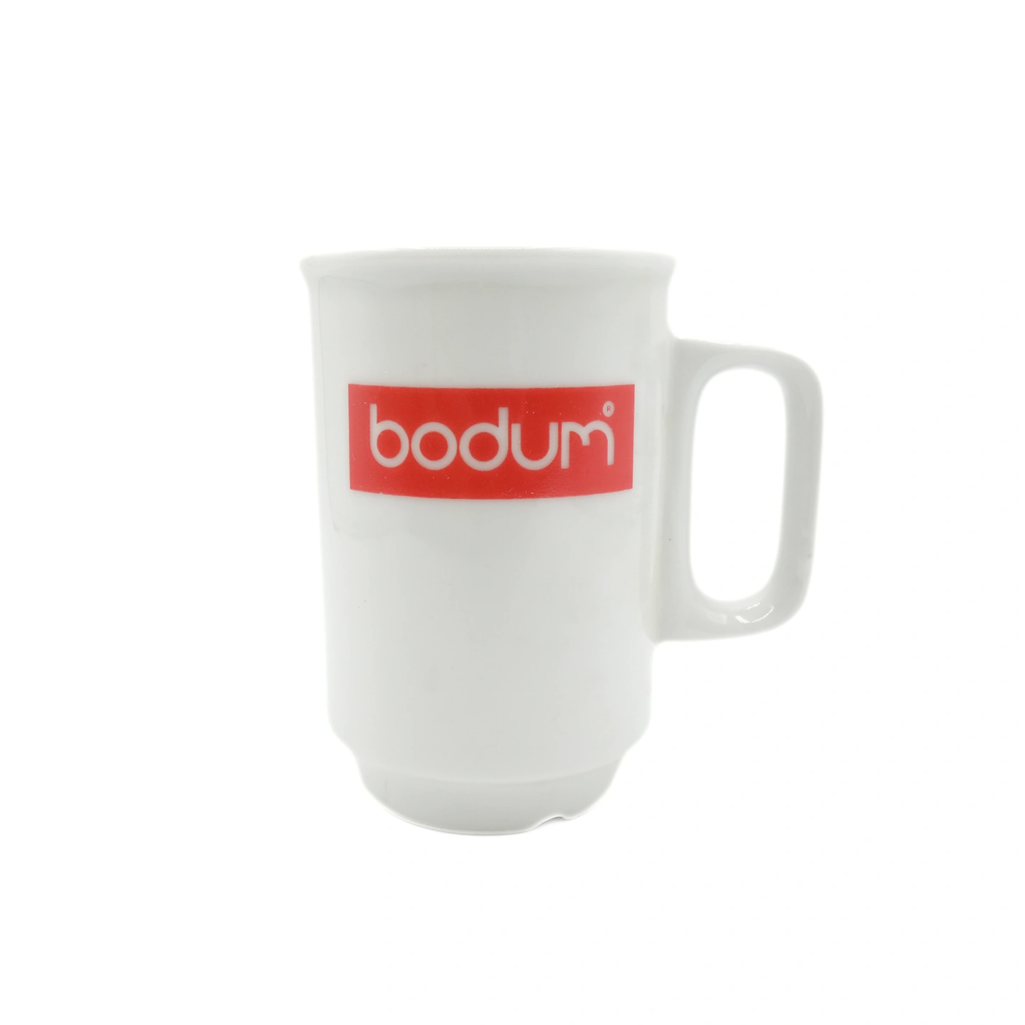 Selling a white Bodum mug. It's in great condition and ready for your morning coffee or tea! It's decorated in Montreal, Canada by Danesco Inc