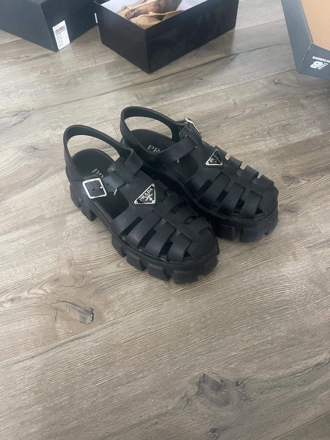 Buy & SellPrada Black Rubber Fisherman SandalsPrada Black Rubber Fisherman Sandals$479Selling a pair of Prada black rubber fisherman sandals. They're in great condition and perfect for adding a bit of edge to any outfit!ConditionGoodSize39BrandPradaWHERE TO MEETRound houseView MapSELLERverifiedNazDowntown600 reviews0 chats·0 favorites·29 viewsSEND CHAT TO SELLERHi Naz! I’m interested in your listing.Hi Naz! I’m interested in your listing.Get the Karrot app to chatSign In to chat
