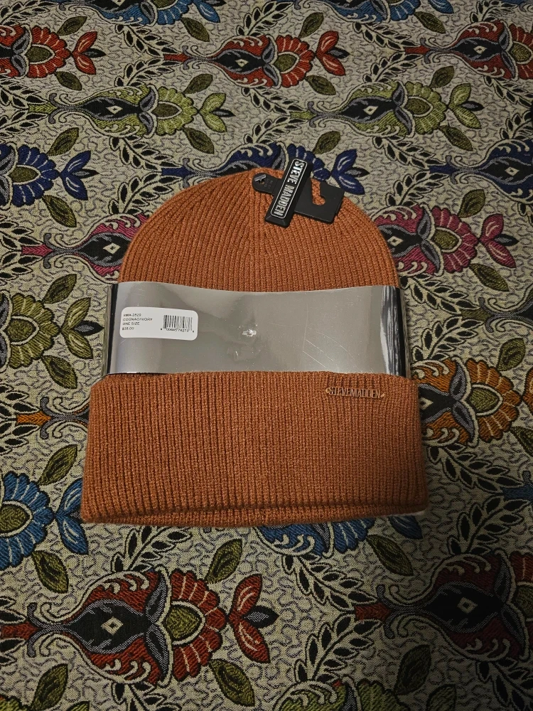Brand new Steve Madden beanie, never been worn! It's a stylish cognac and ivory colour, and a one-size-fits-all. Originally bought for $38. PICKUP only. Pet and smoke-free home.
