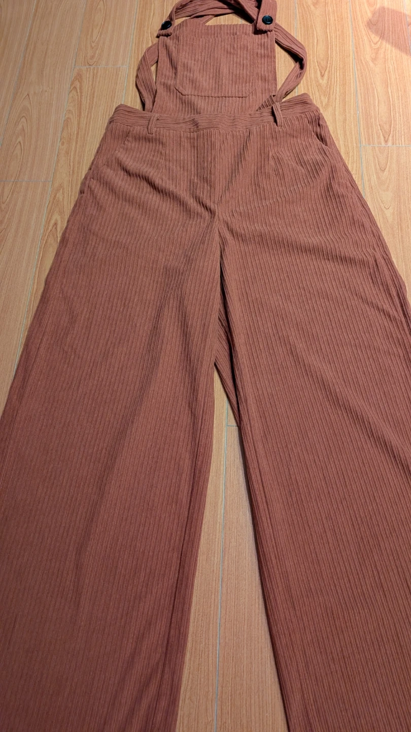 Corduroy Overalls - Wide Leg, Orange - Brown