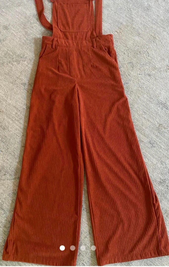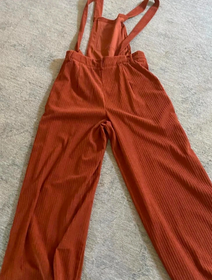 Selling a pair of wide-leg corduroy overalls in a vibrant orange colour! They're super comfy and in great condition, ready for a new wardrobe. Perfect for adding a pop of colour and a touch of retro style to your outfits