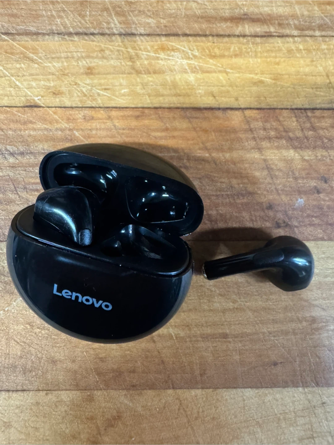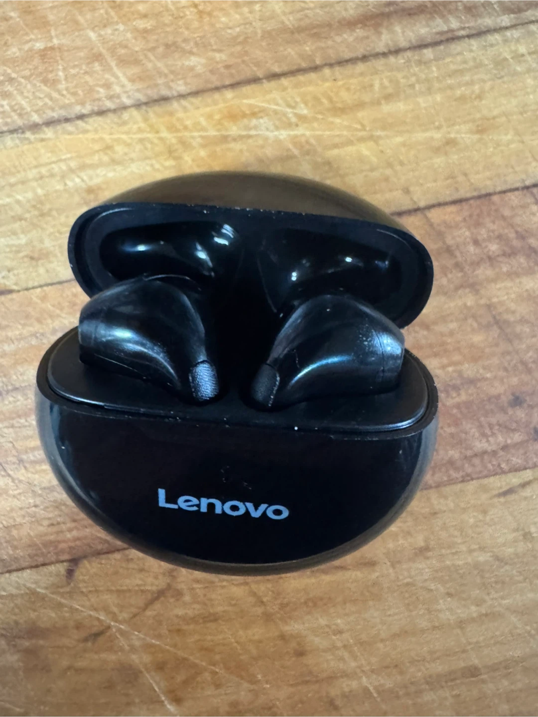 Selling a pair of Lenovo wireless earbuds in black. They are in good condition and come with the charging case. Perfect for listening to music or taking calls on the go!