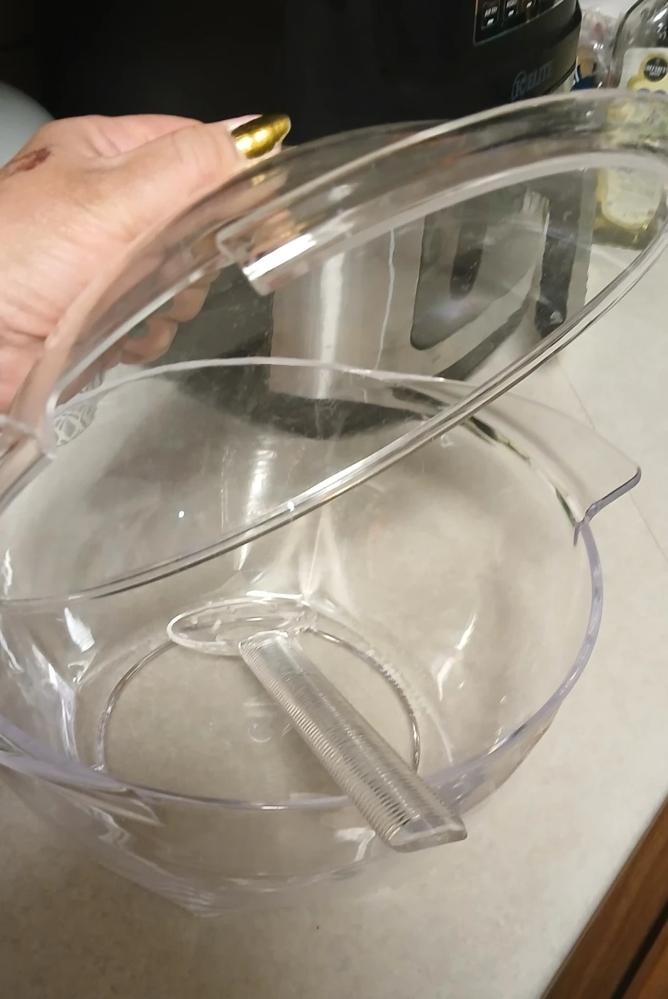 Selling a clear salad bowl with a lid and serving spoon! It's in great condition and ready to use for your next gathering or meal. Perfect for keeping your salads fresh and easy to serve it's very big.