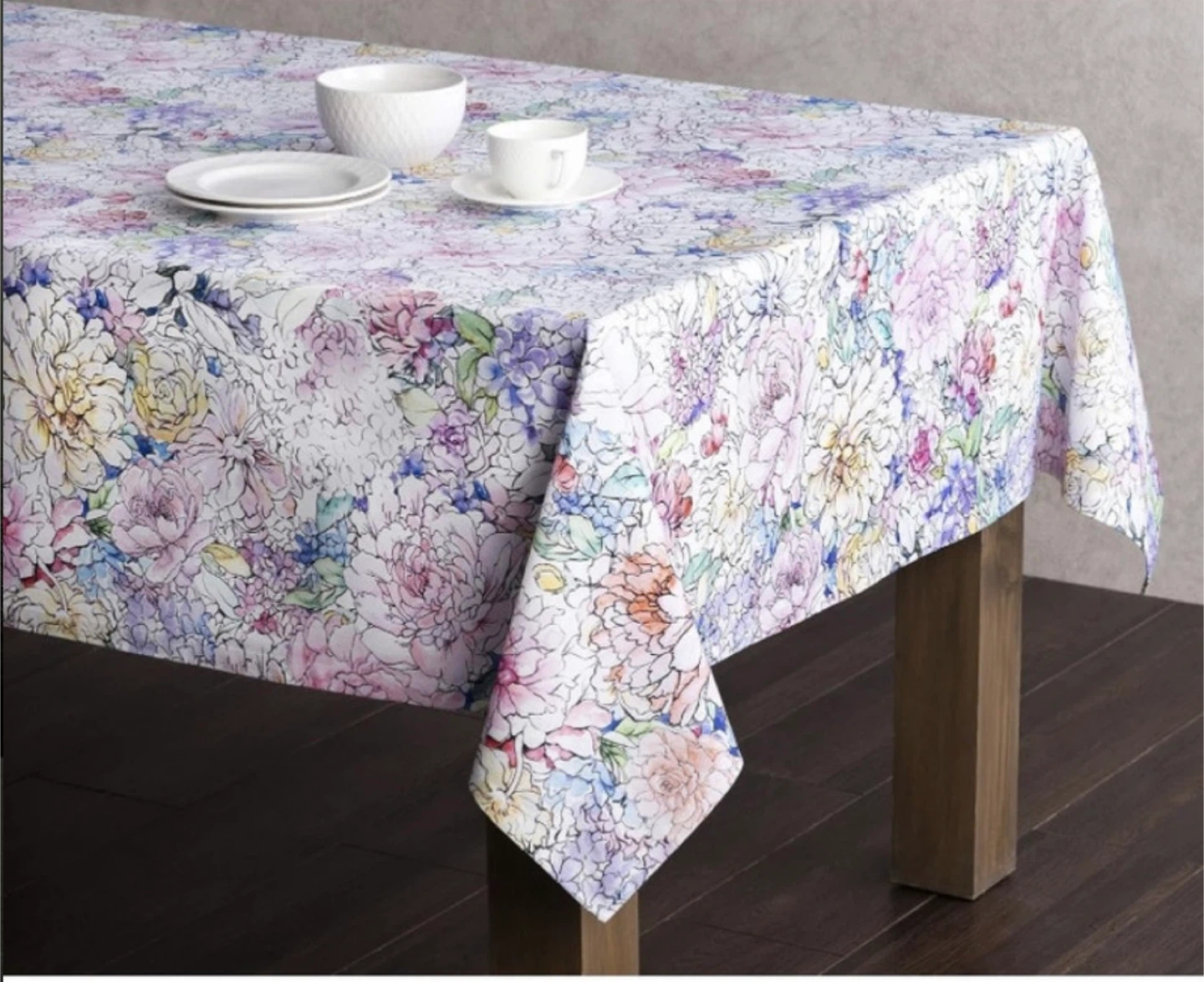 This Maison d'Hermine table cloth is brand new in packaging! It measures 54" x 54" (137 x 137 cm) and is made of 100% cotton. The floral design is so pretty and would look great in any dining room