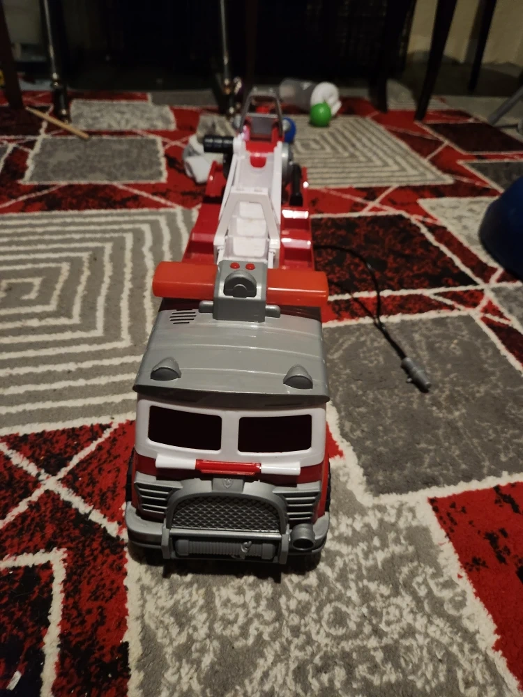 Selling a Paw Patrol fire truck toy! It's in great shape and ready for a new adventure. It's red, white, and grey, and features a ladder that extends. Perfect for any Paw Patrol fan!