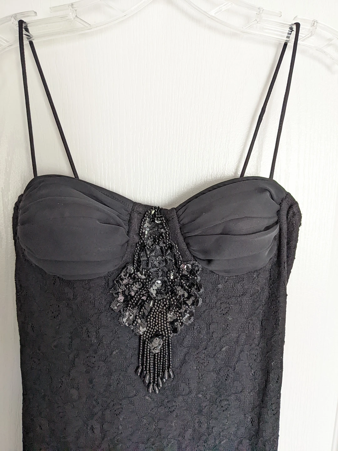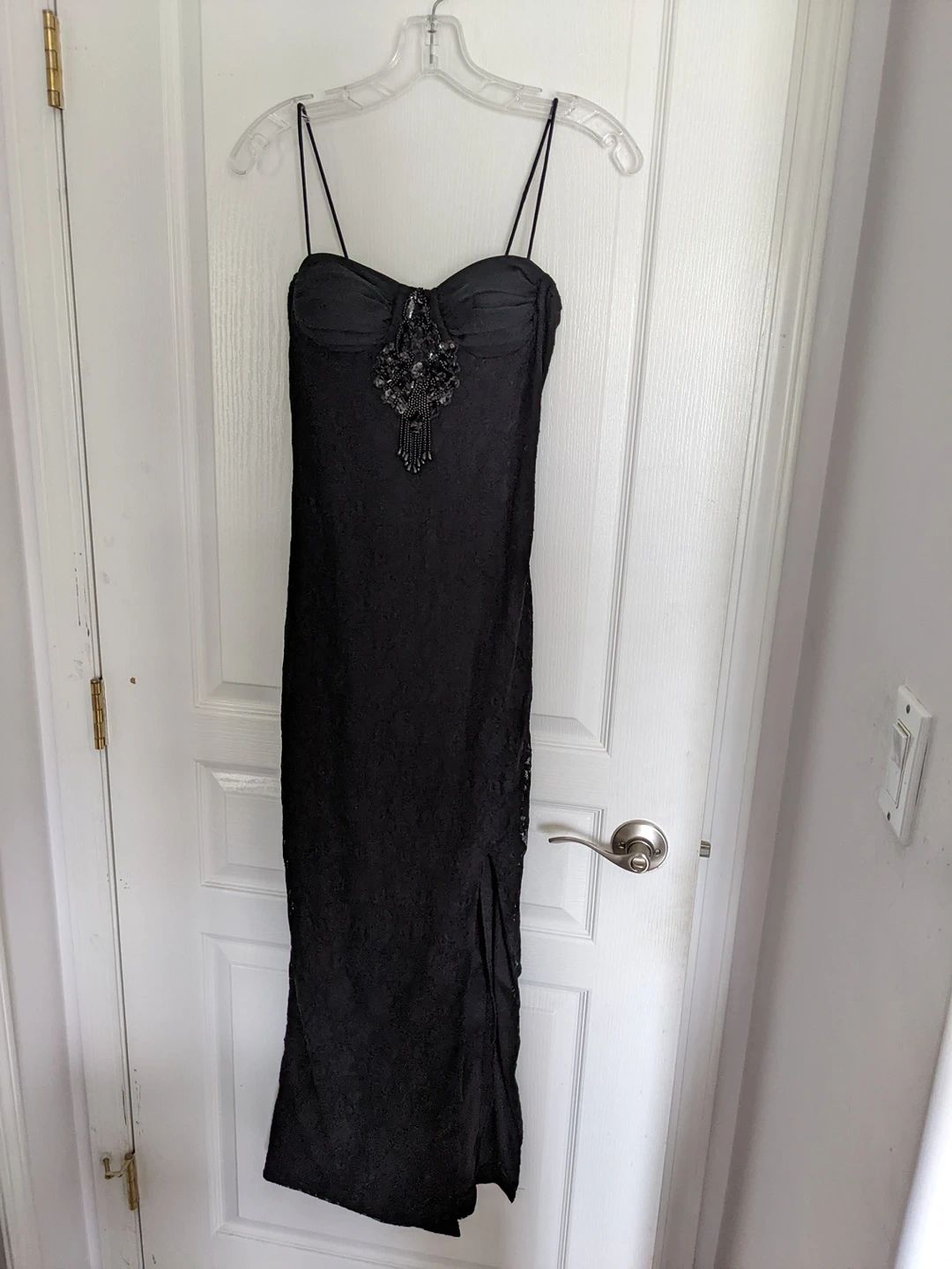 Lori Ann Montreal Black Floral lace station long Dress is new and great care. I got this dress from my daughter's gift for a banquet. However it does not fit me due to the wrong size. it is the size 4.