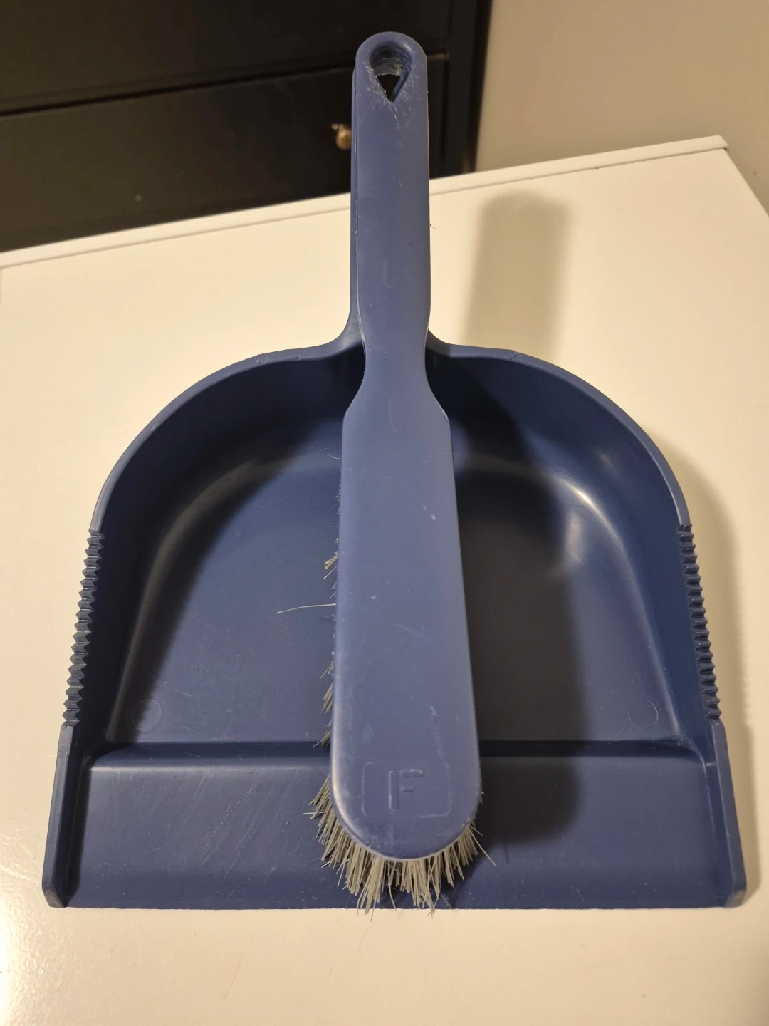 Selling a blue dustpan & brush set. It's in great condition and ready for a new home! Perfect for quick cleanups around the house or in the garage!
