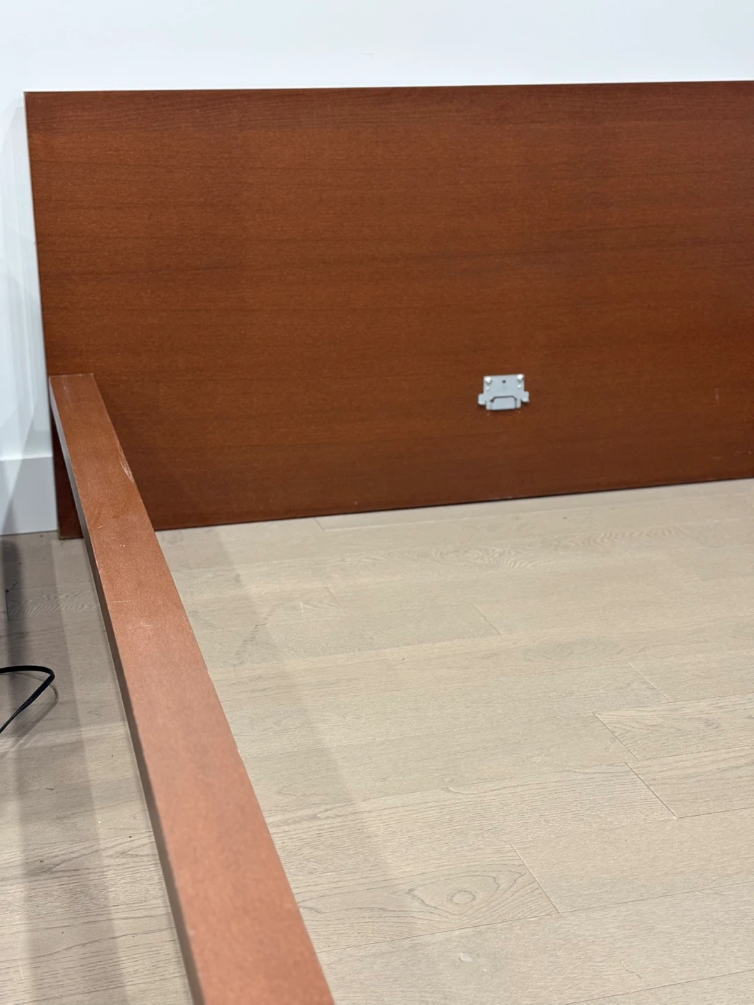 Selling a queen-size bed frame in good condition. It's a sturdy frame and will be disassembled for easy transport. All the necessary hardware is included!
