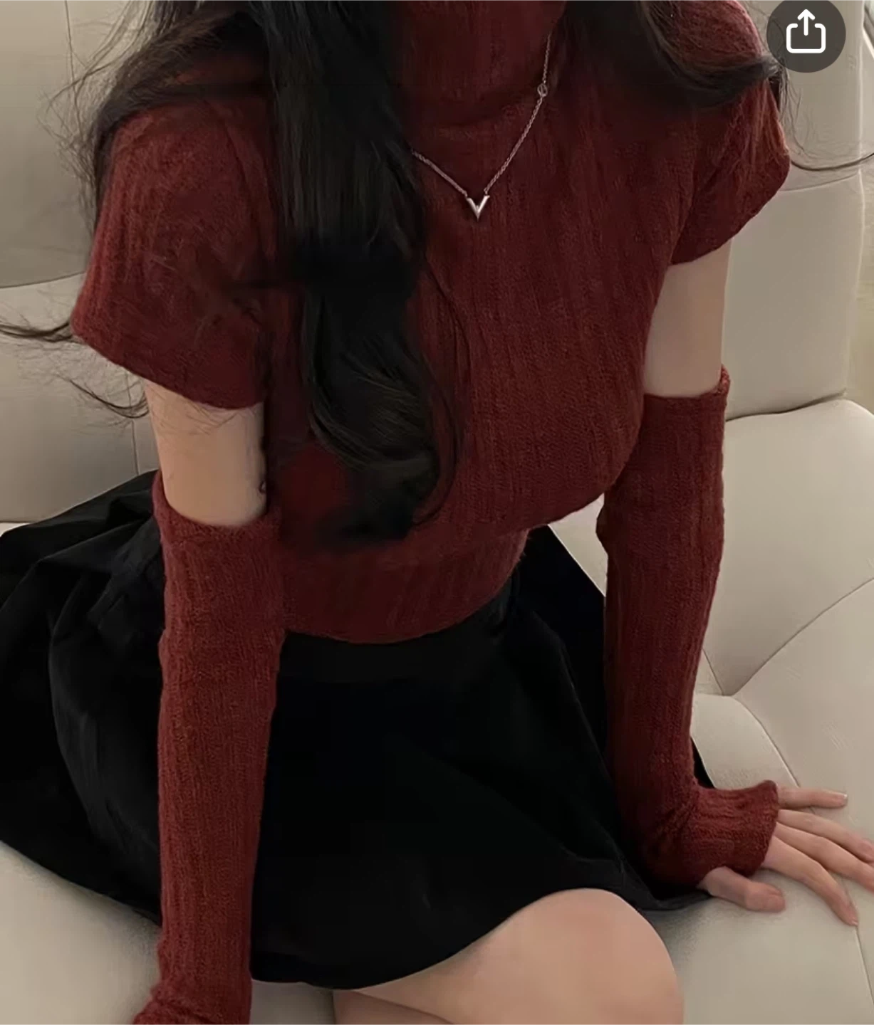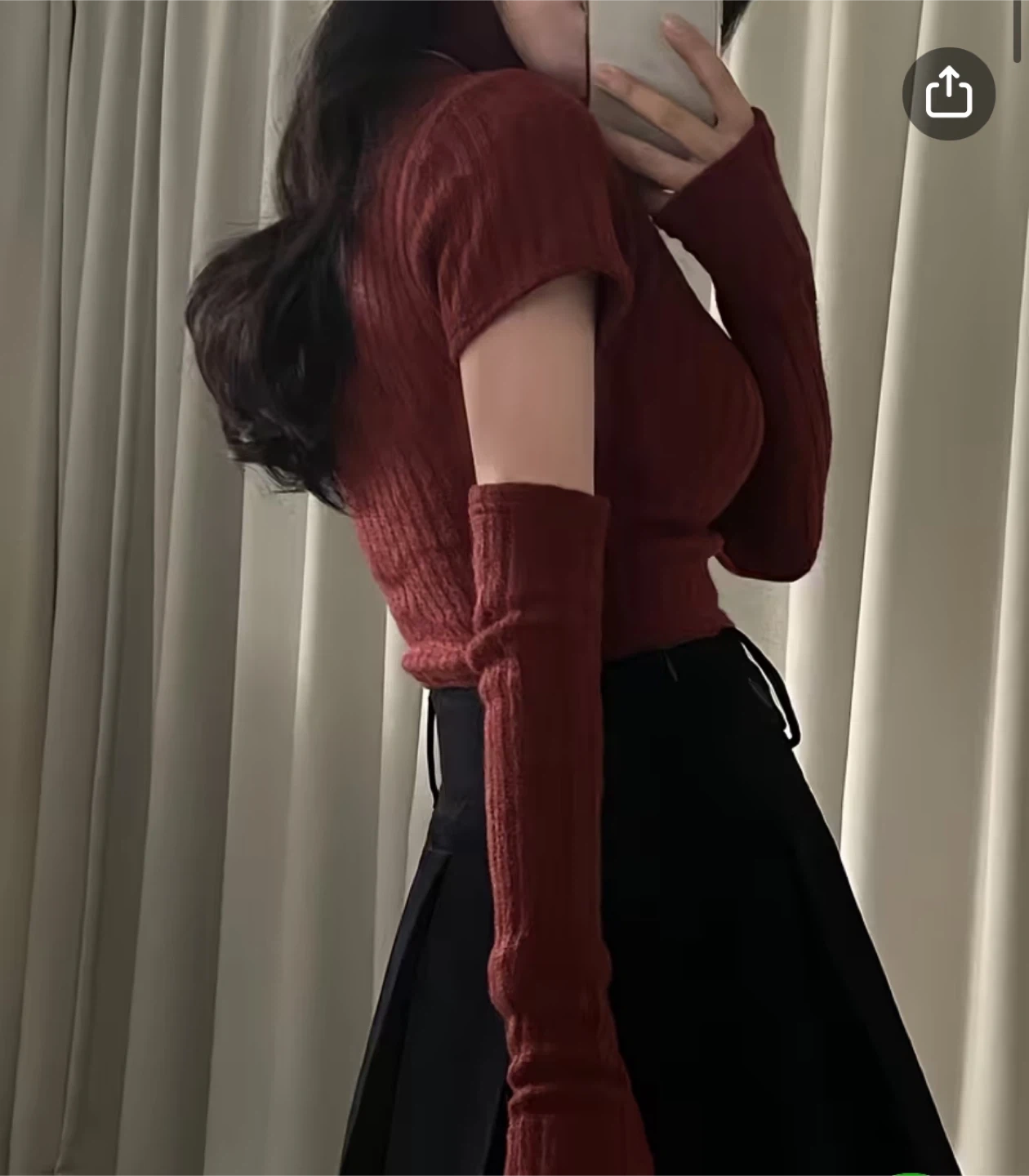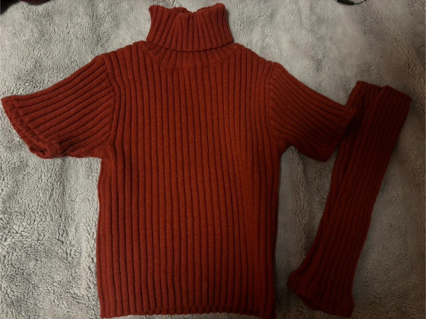 Selling a cute rust-coloured ribbed knit top that comes with matching arm warmers! It's a stylish set that's perfect for layering. The material feels soft and comfortable, and the colour is a lovely warm tone, perfect for the festive season or any occasion! #cleanout