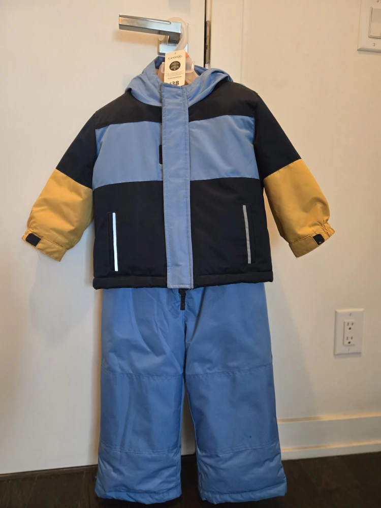 I'm selling a brand new George snowsuit! It's a size 3/3T and features a stylish colour block design in shades of blue and yellow. Perfect for keeping your little one warm and dry this winter season!