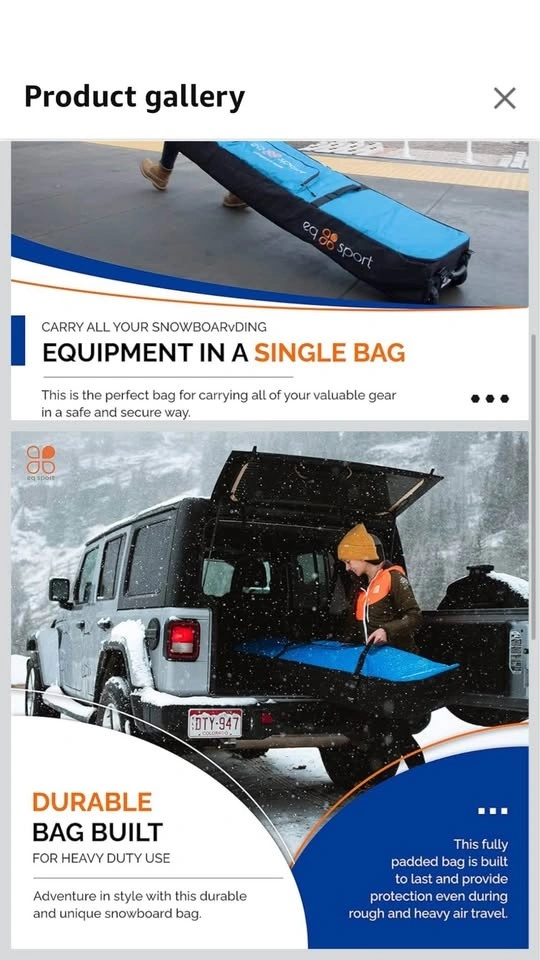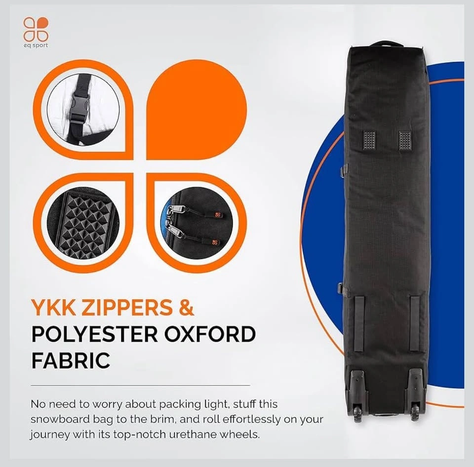 EQ SPORT Snowboard Bag Padded with Wheels (Blue, 168 cm) | Transport Board up to 168cm | Waterproof, 600D Oxford Fabric Wheeled Snowboard Bag