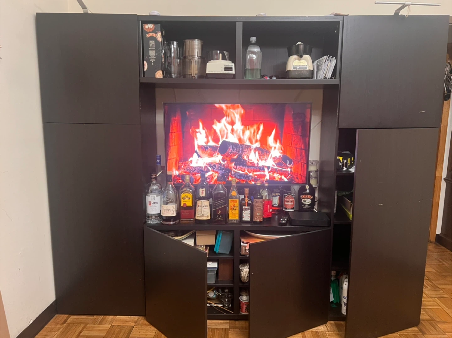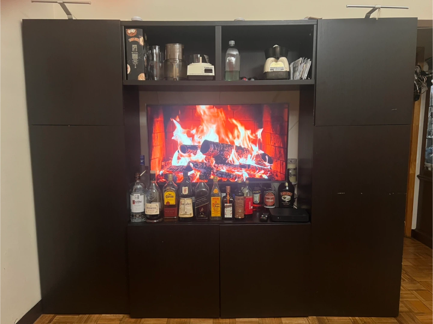 Selling a black lighted entertainment center. It features a large central space for a TV and shelving on top. The bottom has cabinets for storage. Great for organizing your living room! If you are interested must be able to pick it up!