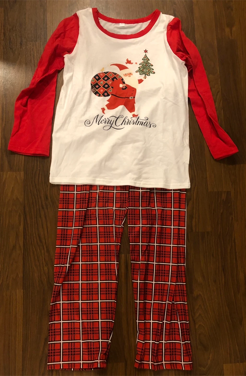 Selling a cute Christmas PJ set for kids! The size is 10-11T. The set includes a long-sleeved top with a Santa Claus design and plaid pants. Perfect for the holiday season! New. Never been worn. Asking $15. Pick up at 1355 Altona Road or can meet up in Markham.