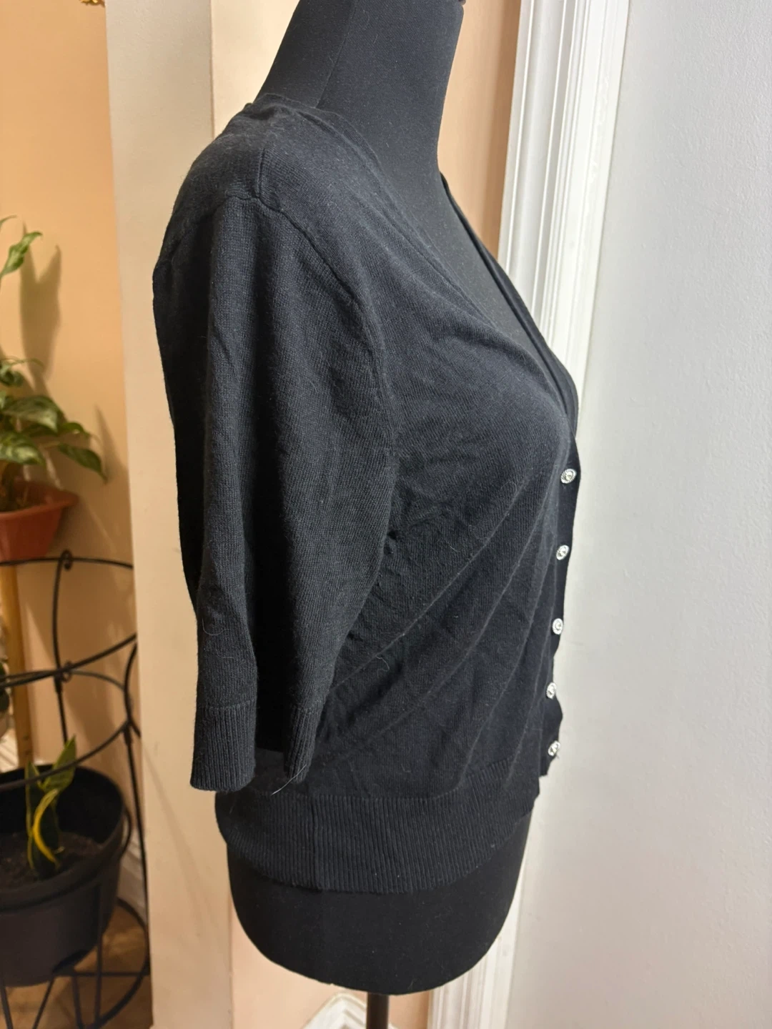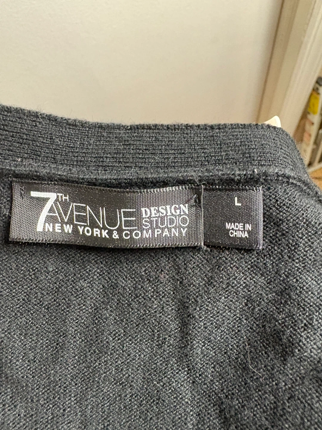 Selling a black cardigan from 7th Avenue New York & Company in size L. It's in great condition and ready for a new owner! It features a classic design with button closure.